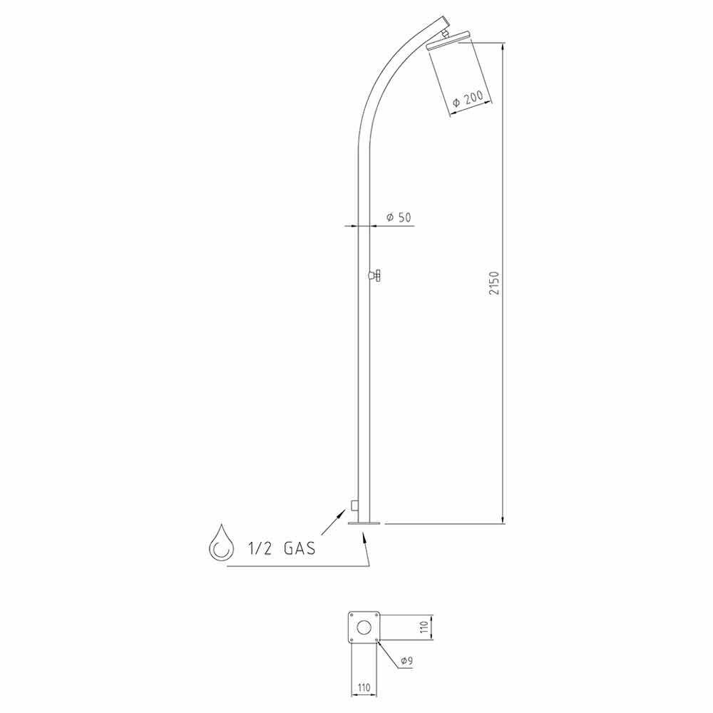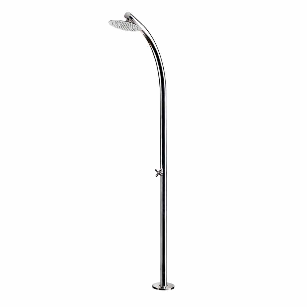 Outdoor shower handcrafted in Italy with polished AISI 316L stainless steel column (2 mm thick) and AISI 304 stainless steel shower head. An essential and elegant design enriched by an important functional side given by the high technical performance made possible by the attention to detail and the use of quality materials. Its structure is designed to deliver only cold water, making it an ideal solution for cooling off during particularly hot and sunny days. It stands out for its simplicity but at the same time for its originality , a feature given by the modern and cutting-edge look which makes it a perfect solution for any outdoor environment such as beach resorts and tourist facilities but also private environments such as swimming pools and gardens, where it is necessary to enrich the aesthetics with personality and character. this shower