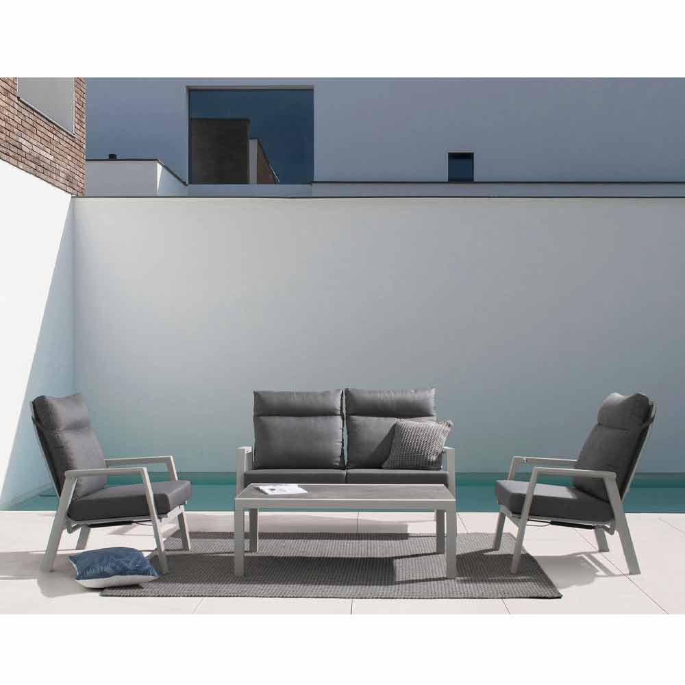 Outdoor Sofa in Fabric and Aluminum with Reclining Backrest - Nathy