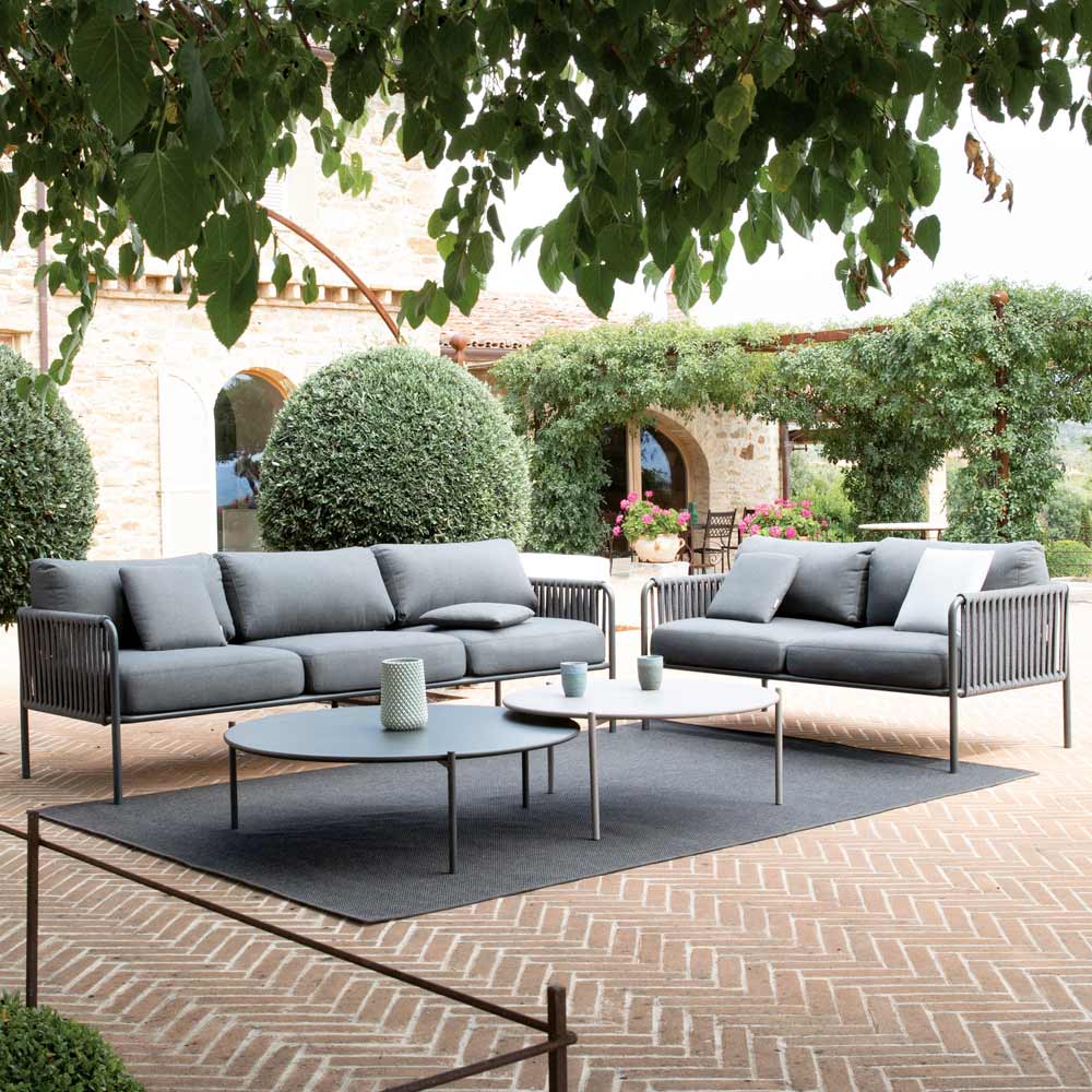 Garden sofa in steel and rope of various sizes with cushions Made in Italy.