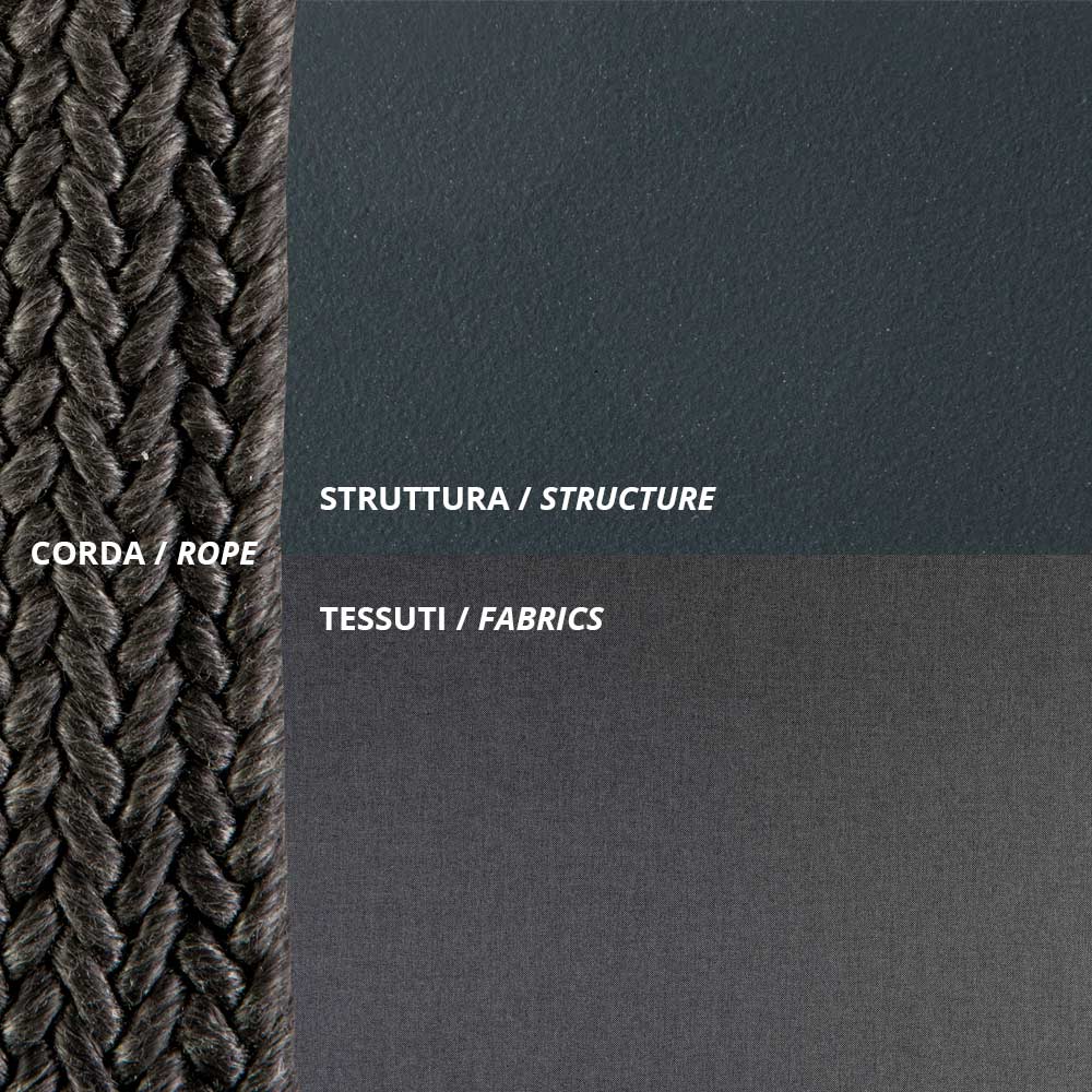 - Frame: antique grey, Ropes: black, Cushions: anthracite