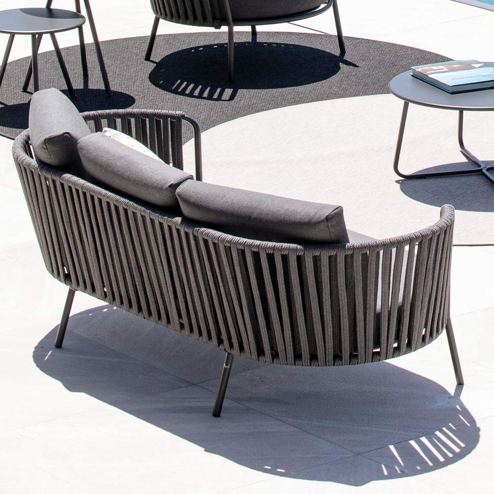 The contemporary design and the interweaving of basic geometric shapes create a dynamic and functional atmosphere . With this piece of furniture, any outdoor living room will be perceived as a fluid space that integrates perfectly into any type of outdoor space.