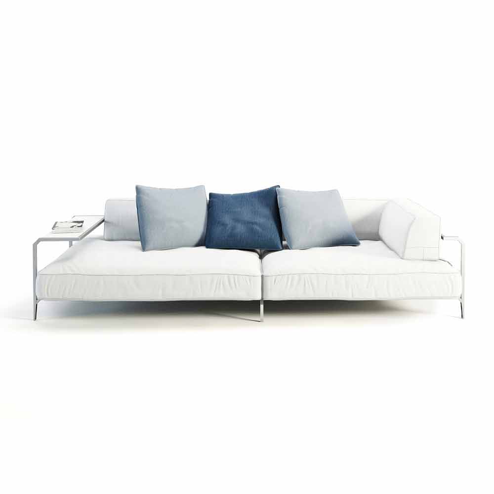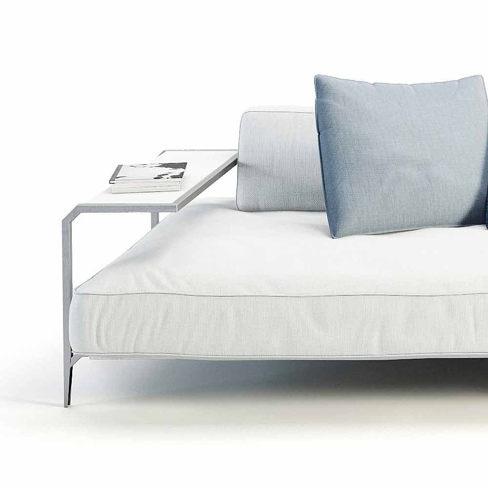 Outdoor sofa with coffee table, in steel and white fabric, modern design made in Italy.
