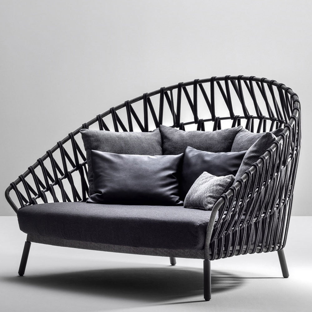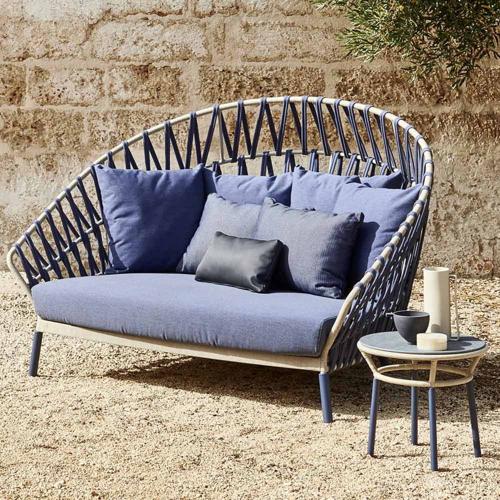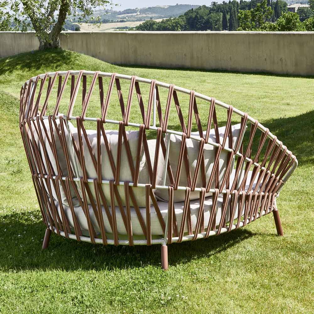 Garden sofa with painted aluminum structure and woven backrest Made in Italy.