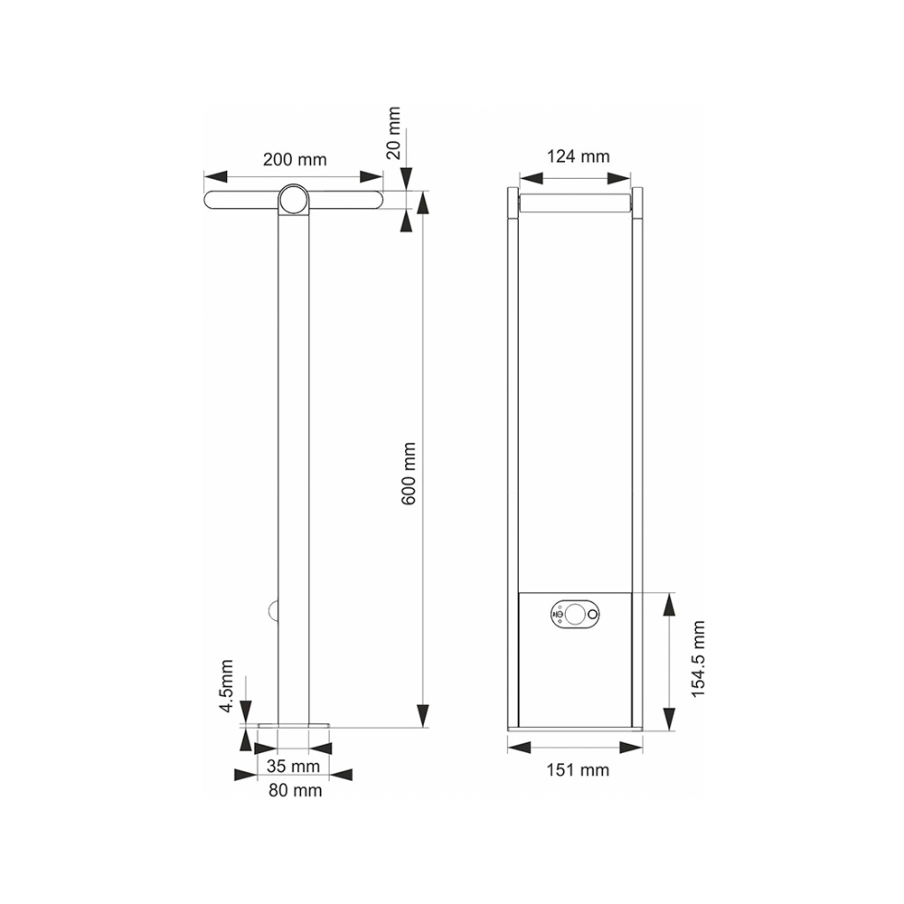 20,000 hours of autonomy Finishes available: Available sizes:- L 15.1 x W 20 x H 60 cm;