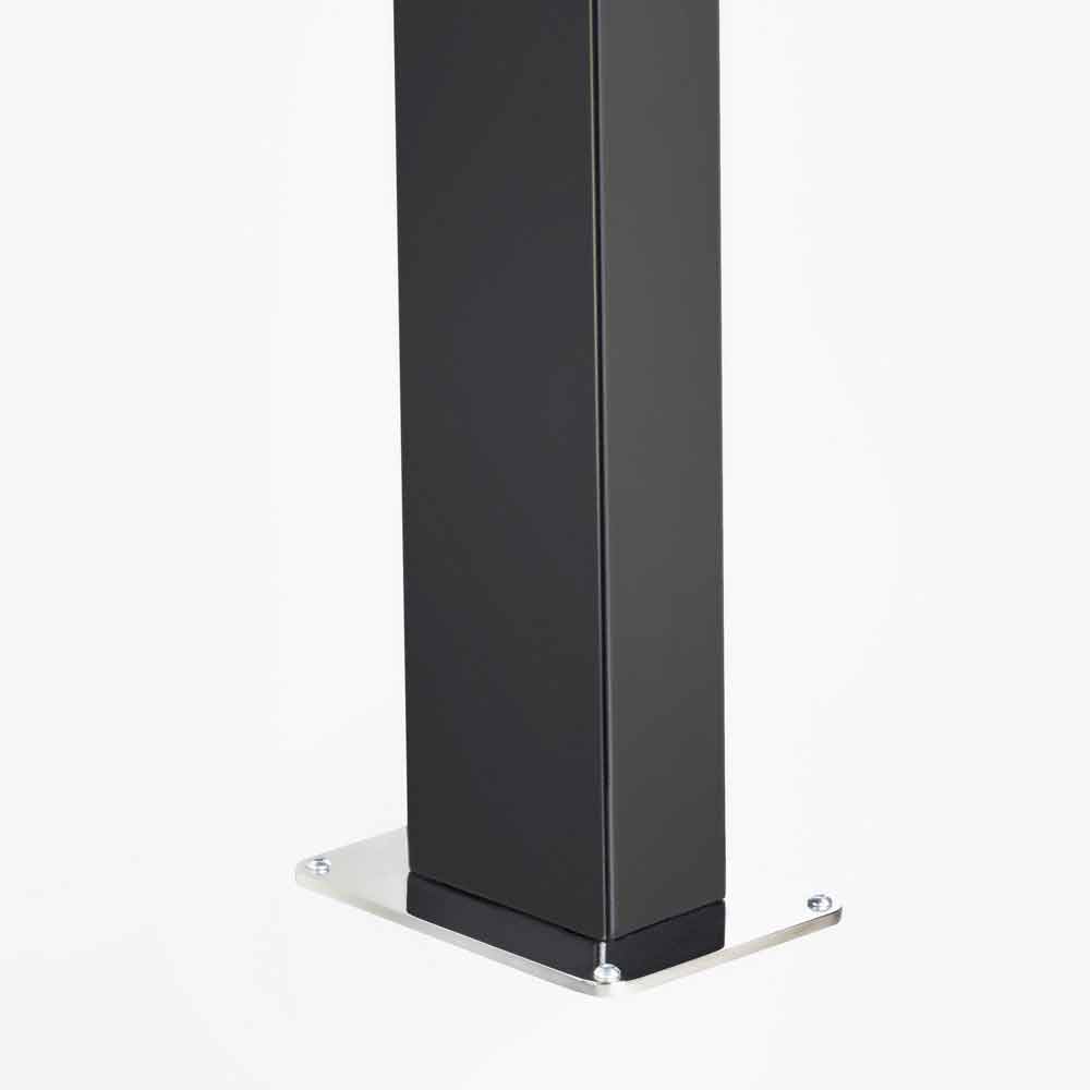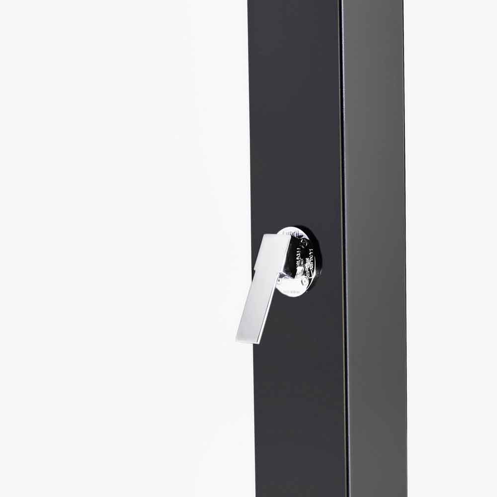 stainless steel (3mm thick) oven-painted in black finish and shower head arm in polished AISI 316L