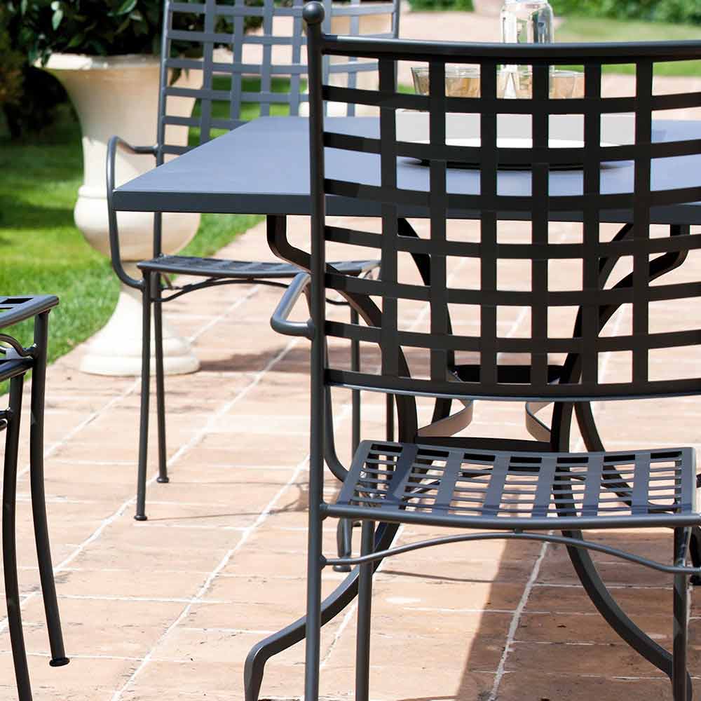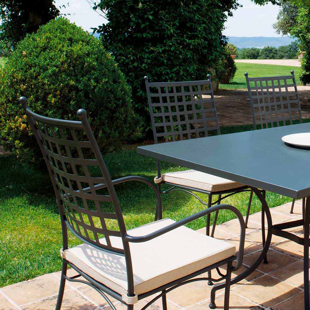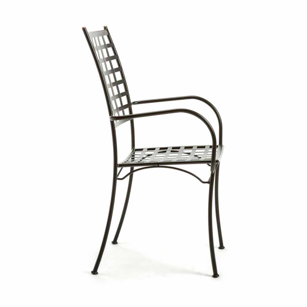 Outdoor armchair in powder coated galvanized iron with armrests stackable Made in Italy, 4 pieces.