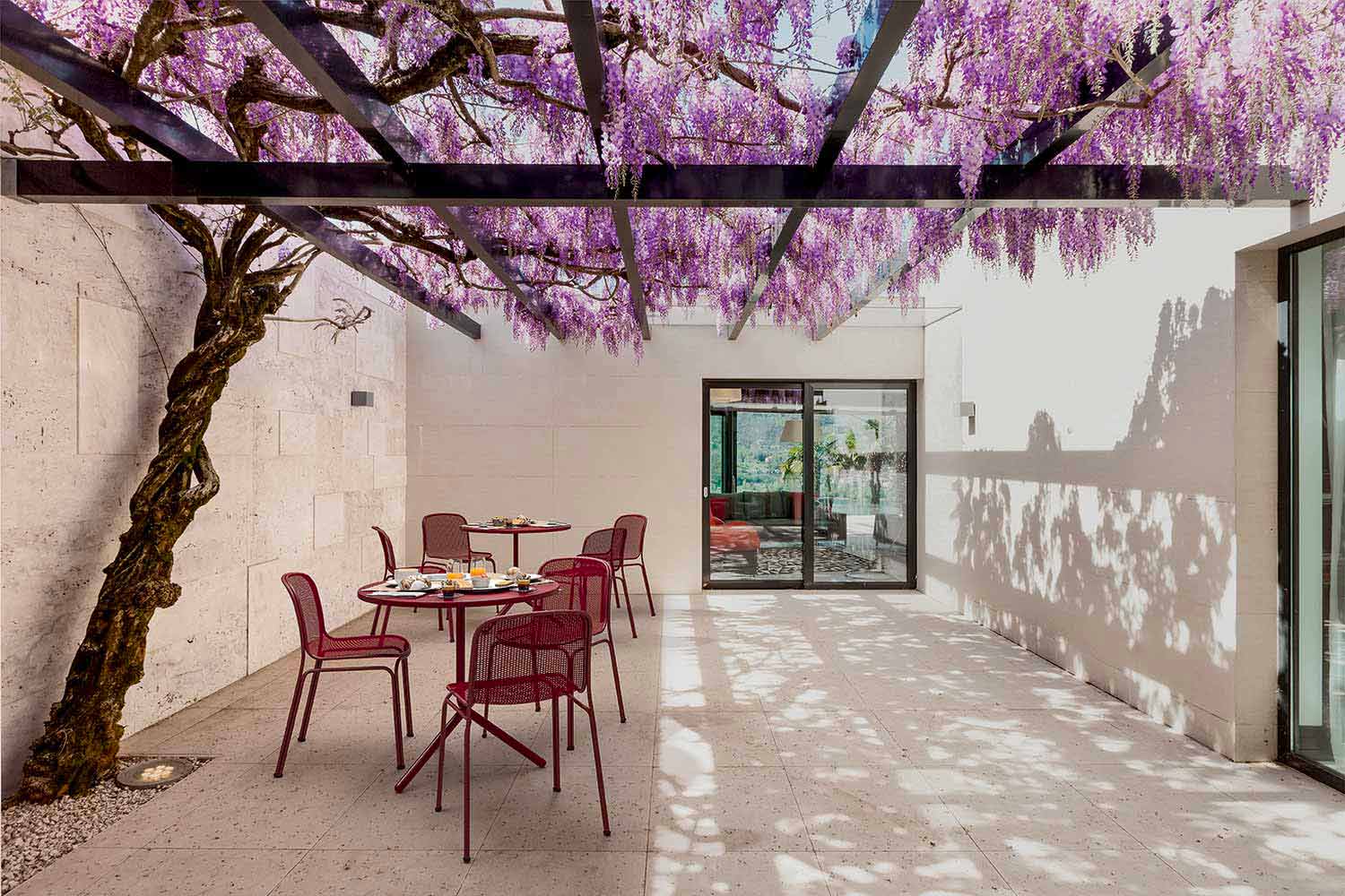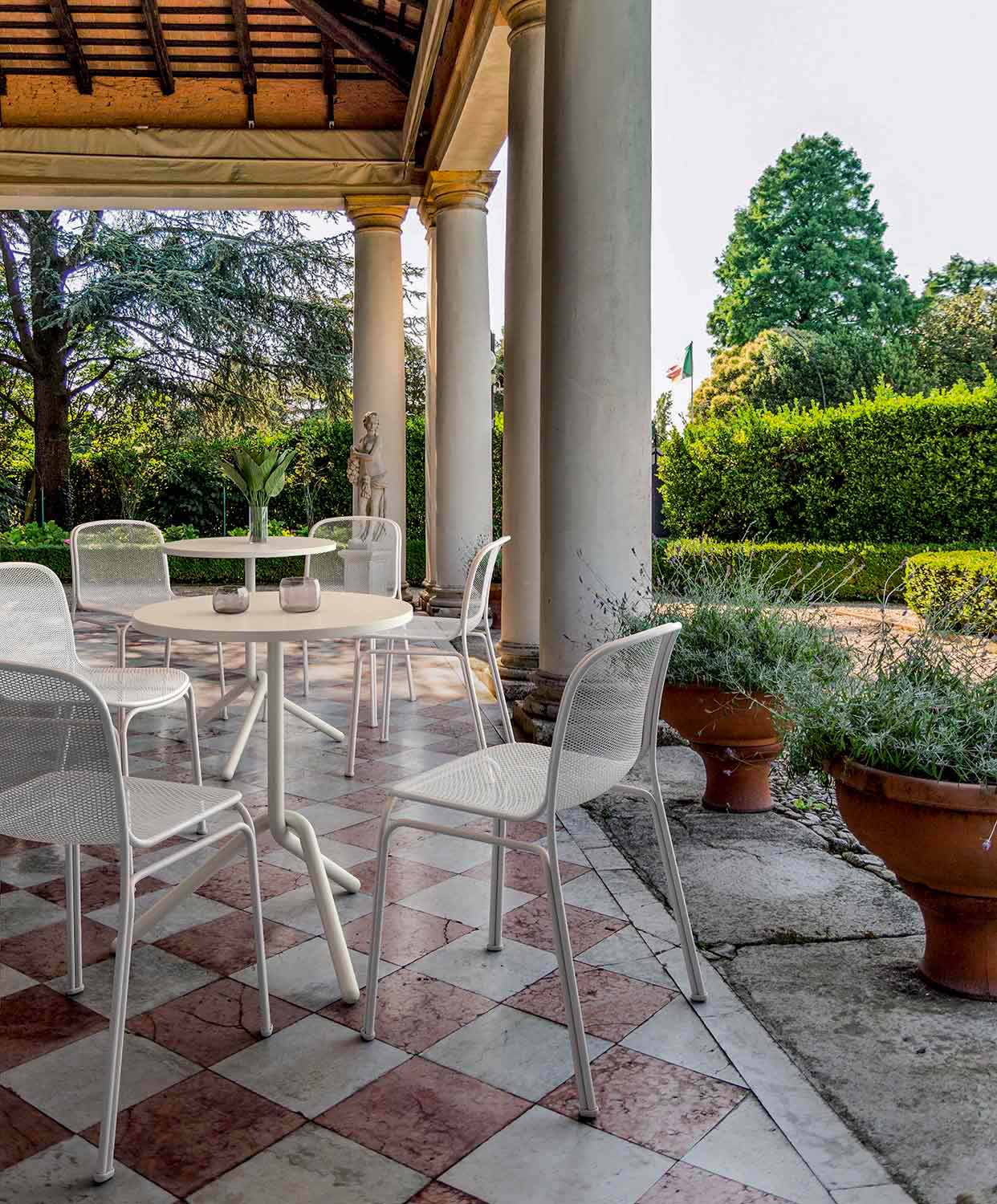 Prunella is a wonderful outdoor chair entirely made of metal and wire mesh that perfectly combines traditional lines with a contemporary design making the chair light but solid. It is also extremely easy to handle thanks to the slightly raised body compared to the legs. Available in 5 color variations that allow it to give personality to any environment.