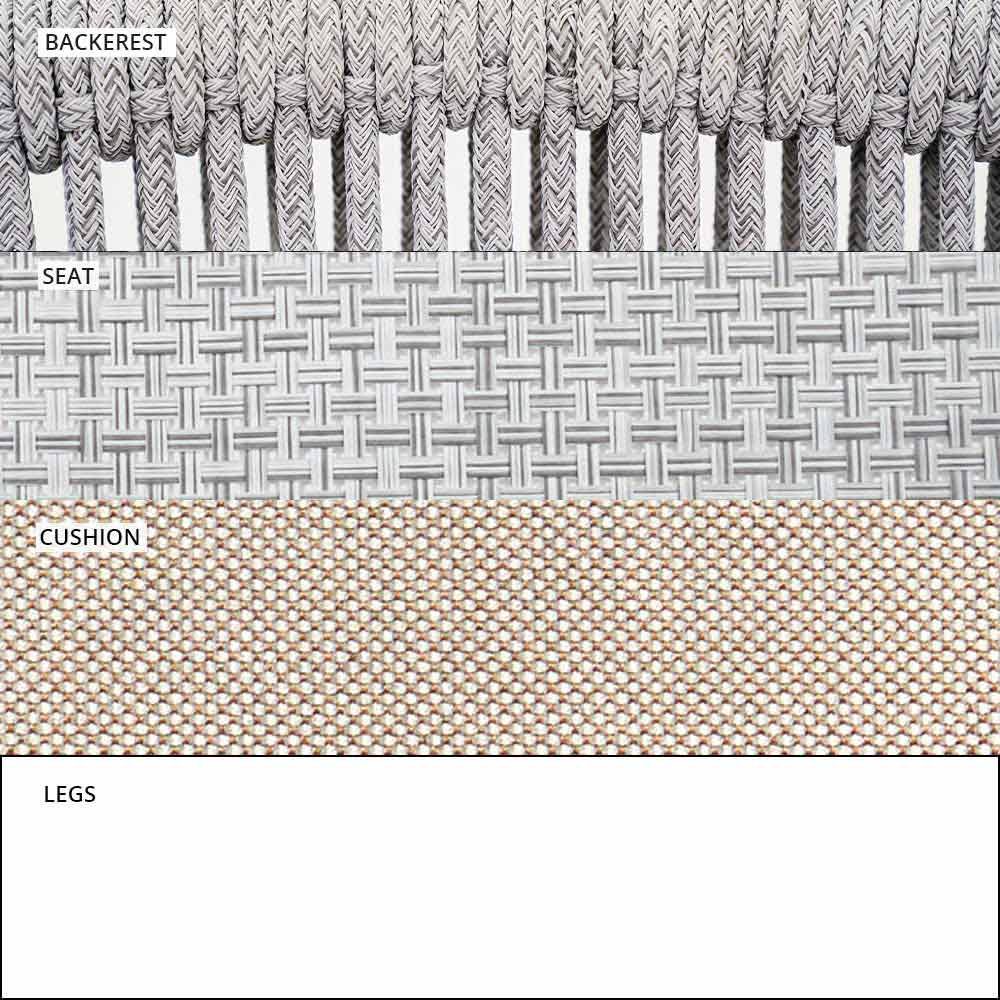 The intertwining of the backrest in VAR # TEX synthetic cord enhances the aesthetics of this sofa designed to enjoy outdoor days in company.