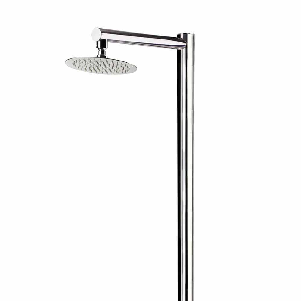 Outdoor shower made in Italy with polished AISI 316L stainless steel column (2 mm thick) and AISI 304 stainless steel shower head. Its style can be described as minimal and aimed at simplicity, thus allowing it to be particularly versatile and therefore ideal for the most varied outdoor environments such as beach resorts and tourist facilities but also private environments such as swimming pools and gardens.