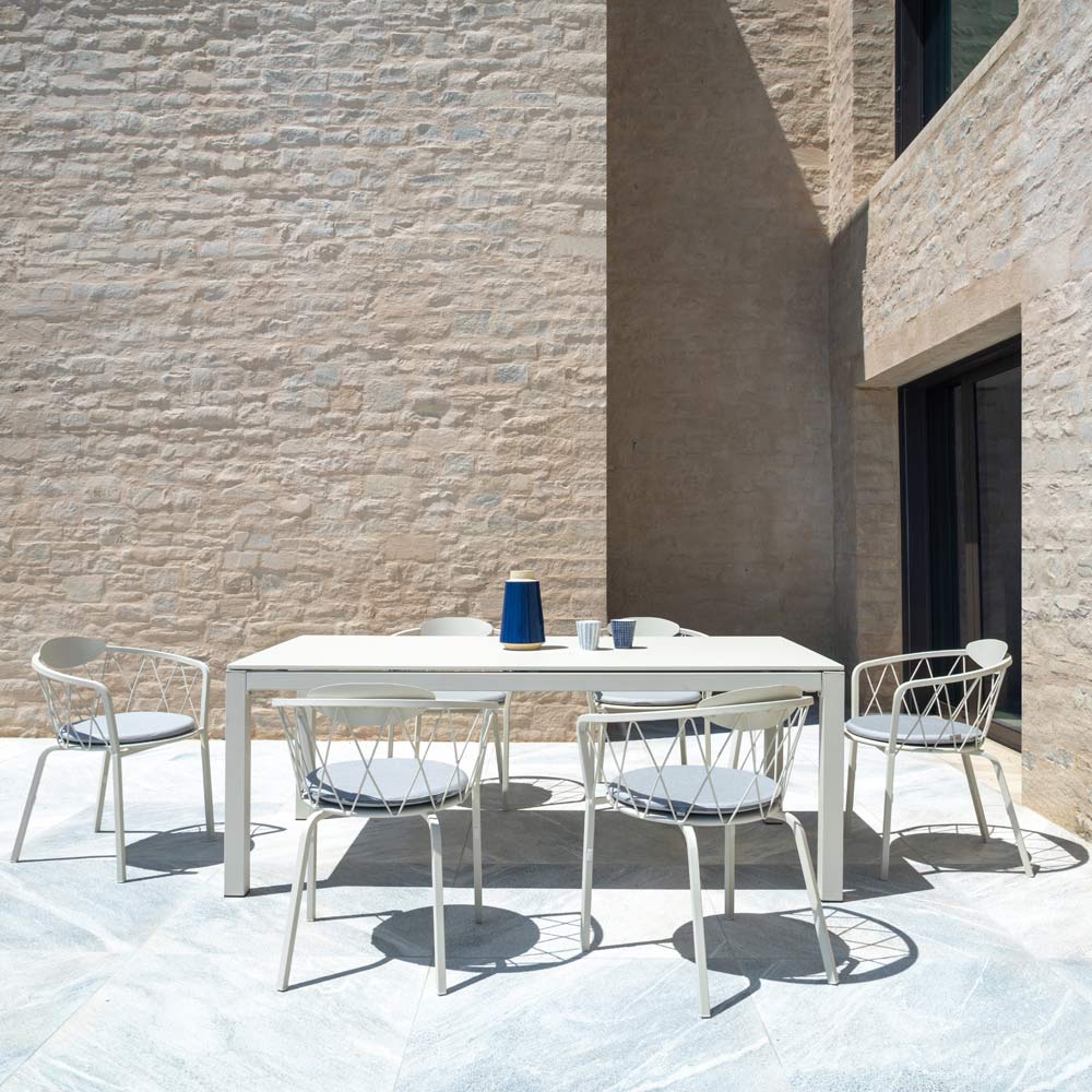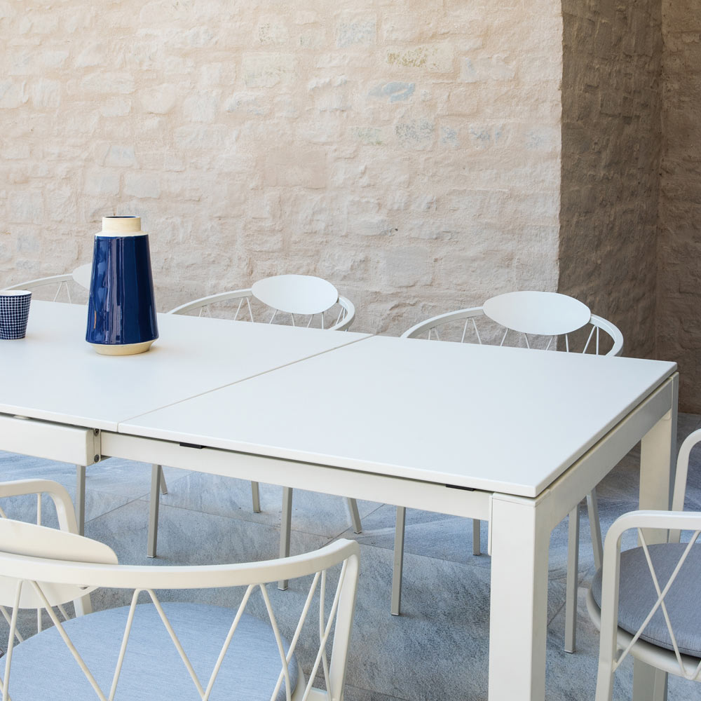 Extendable outdoor dining table in powder-coated galvanized iron Made in Italy.