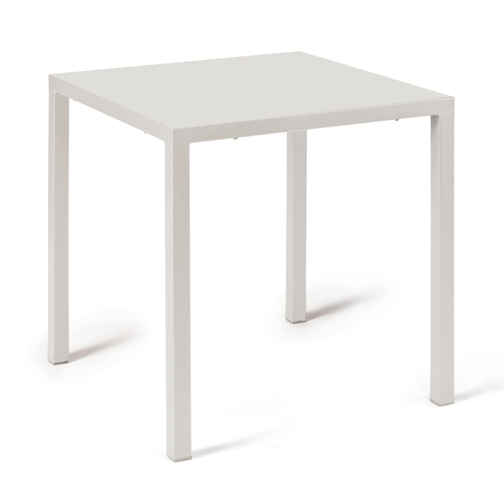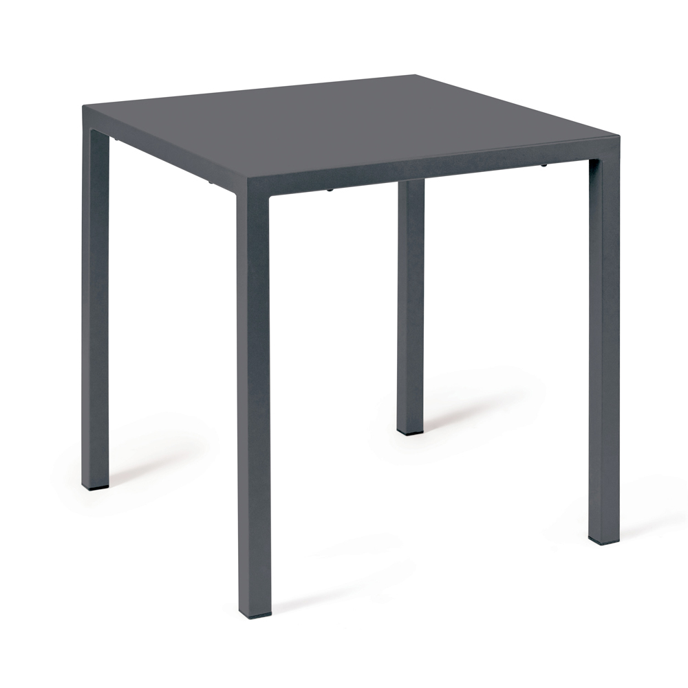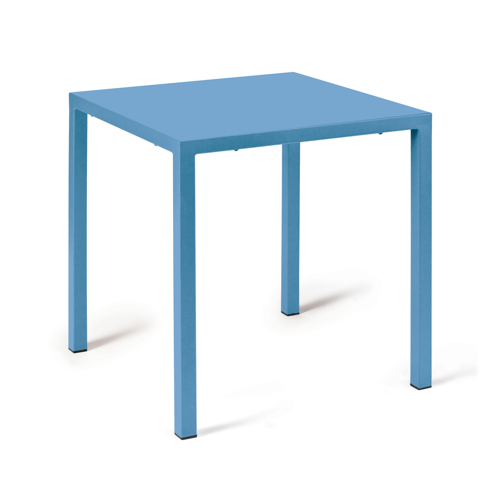 Stackable and self-leveling outdoor dining table Made in Italy entirely made of galvanized steel with square legs and 4 regular feet.