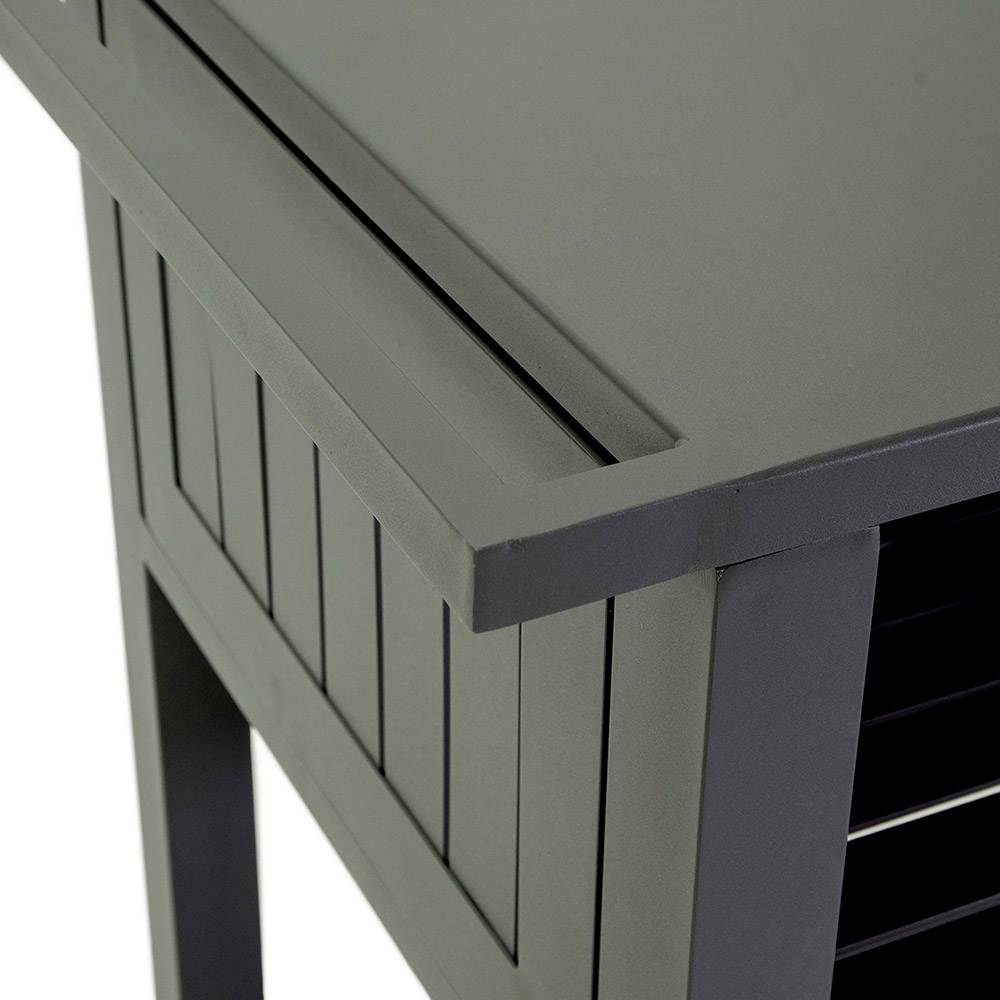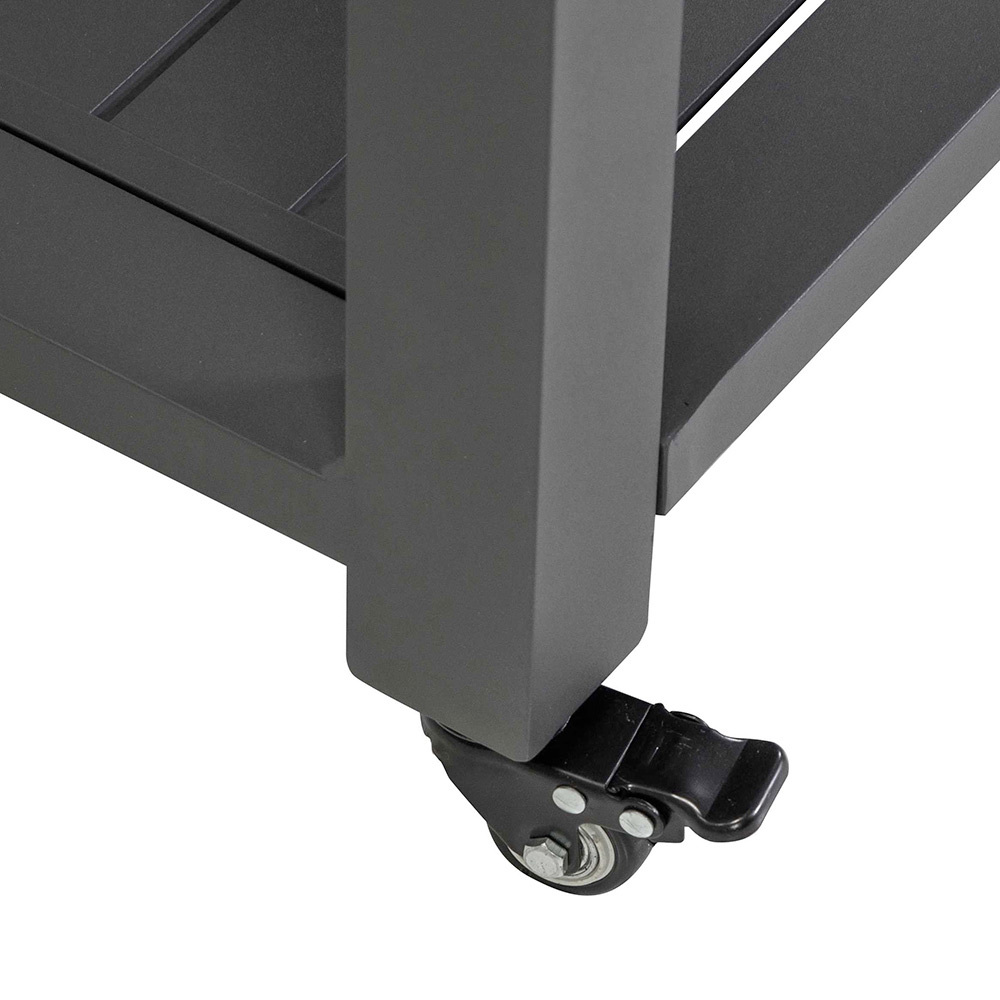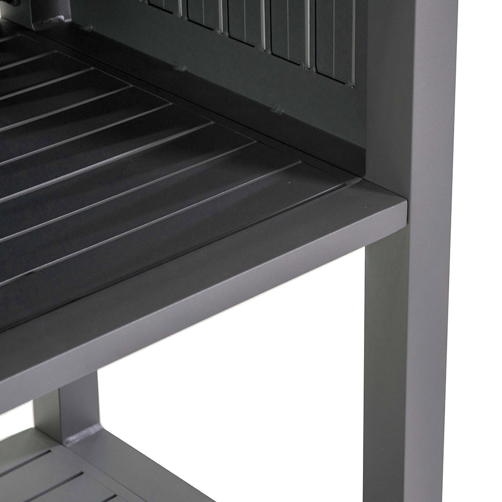 Offering ample work and storage surfaces , the design includes a handy top shelf for prepping and serving, a middle shelf to keep utensils and accessories close at hand, and a large bottom shelf perfect for storing additional supplies or large garden tools.