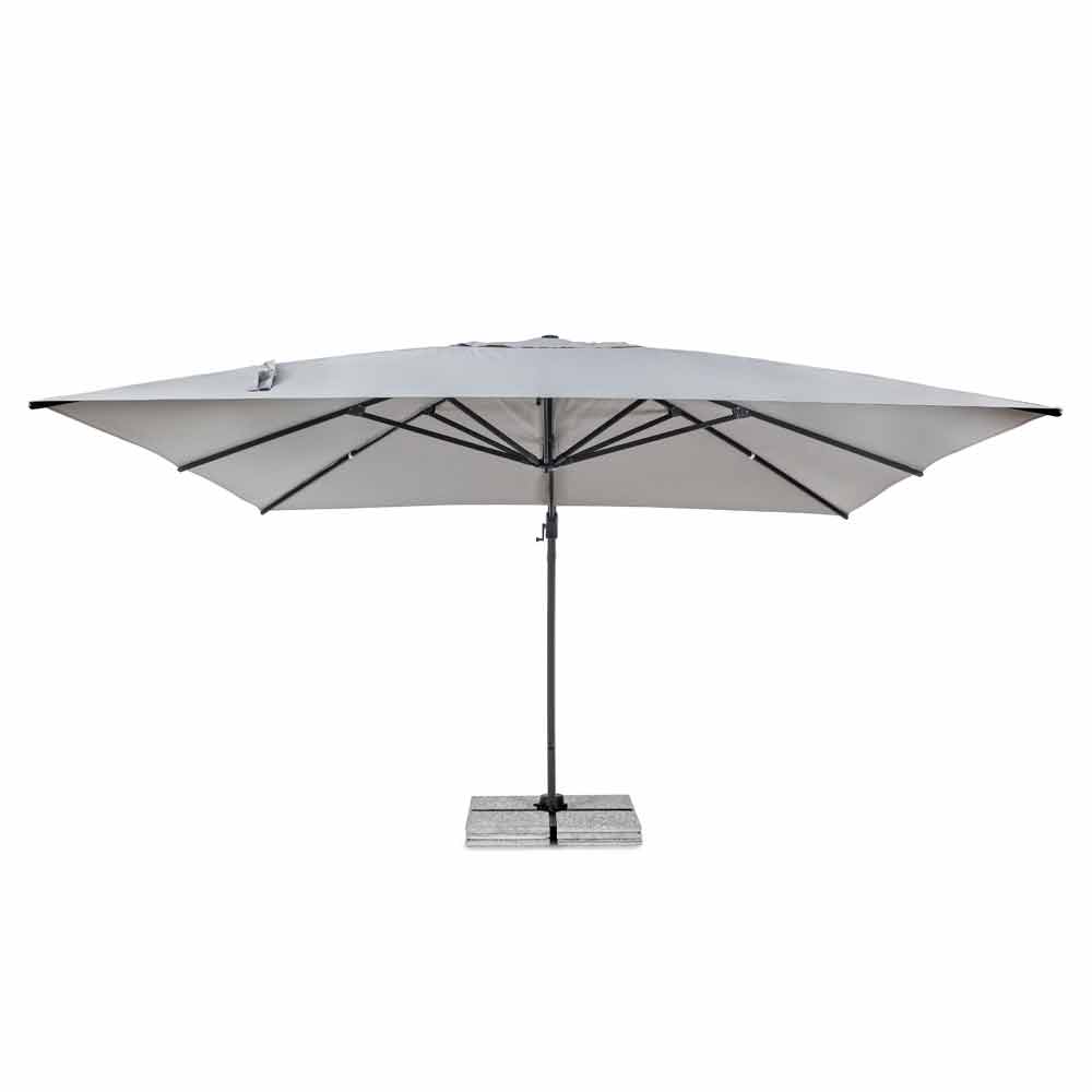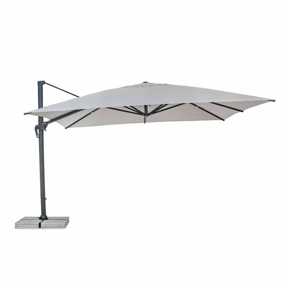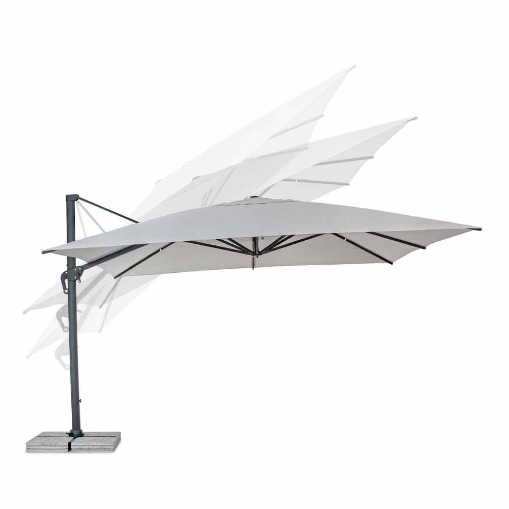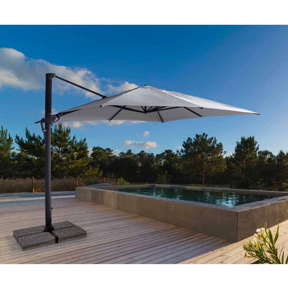 4x4 outdoor umbrella in gray polyester and anthracite aluminum.
