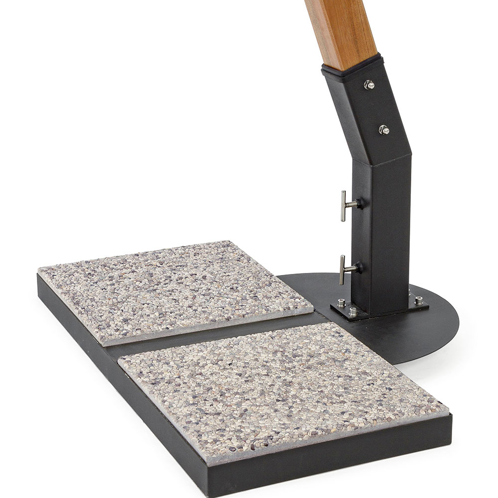 93x93 mm pole, 8 20x35 mm ribs with aluminum ends and leather inserts.
