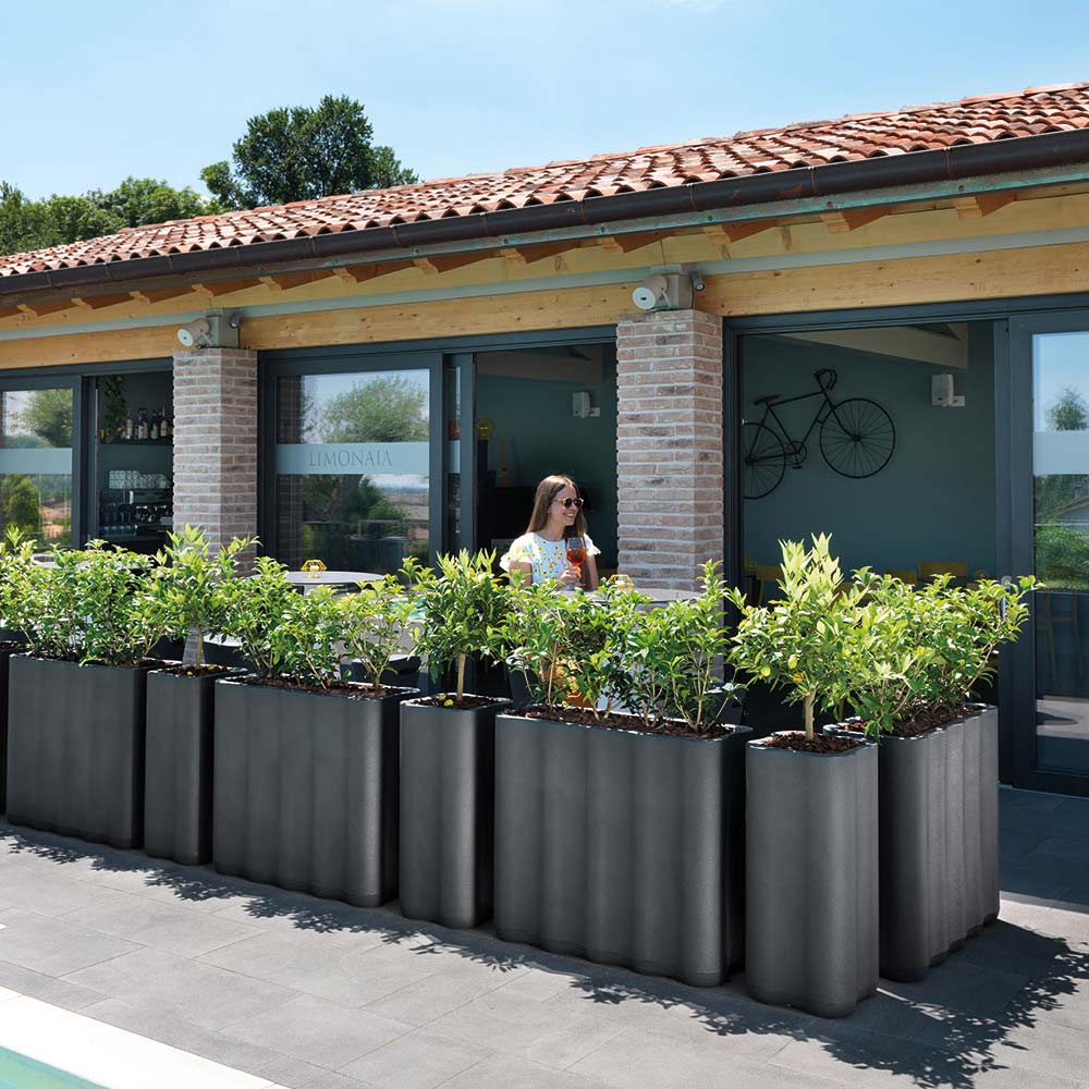 The availability of 7 different colors and the possibility of choosing between the slender column shape and the wider and more capacious one, makes this outdoor vase ideal for delimiting your driveway, garden or house facade with a strong contemporary style.