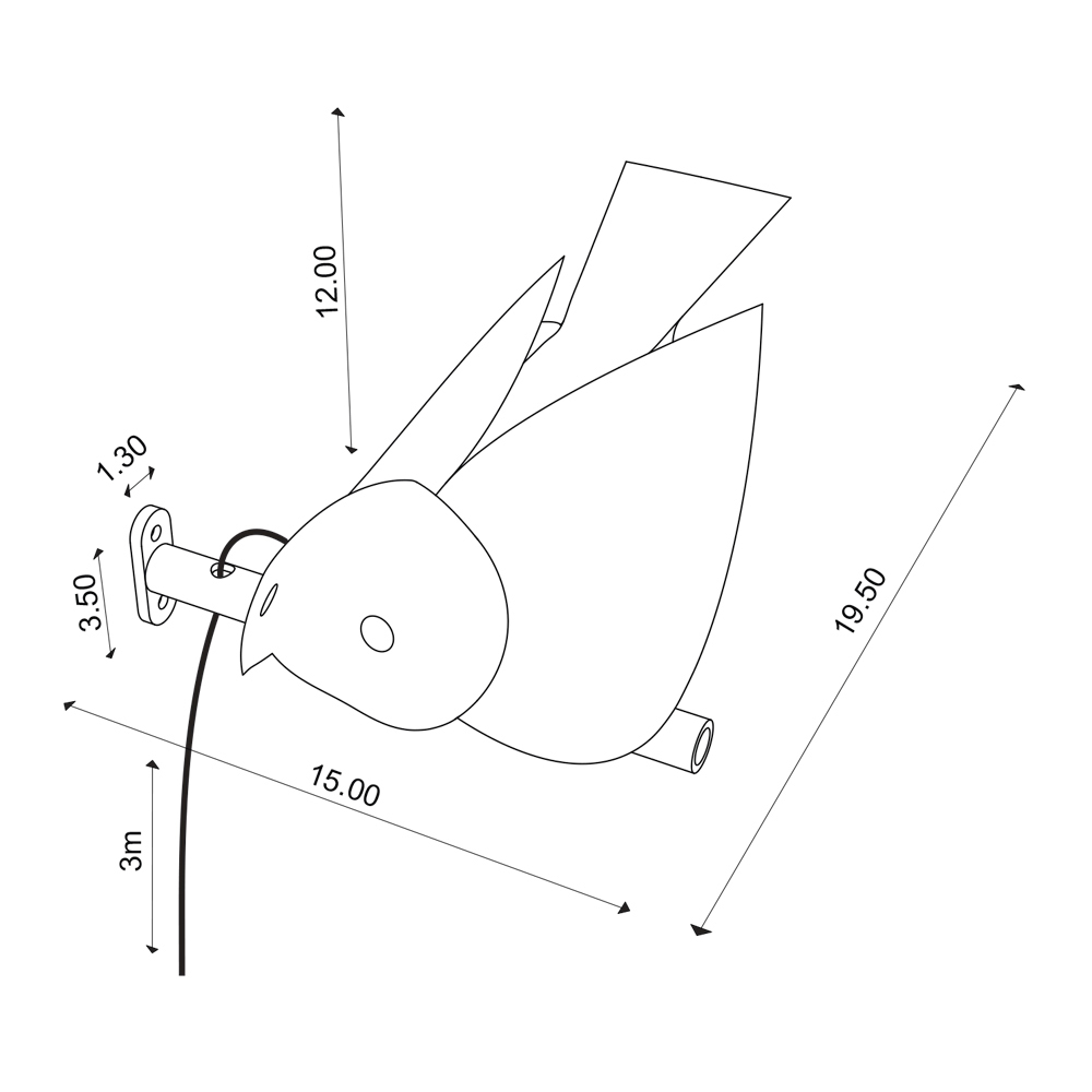 natural burnished metal. The lamp can be adjusted to 3 different positions. Add a touch of nature and elegance to your space with this charming bird-shaped lamp . The minimalist and modern design, combined with the charming silhouette of a bird, makes this piece a real eye-catcher in any environment.
