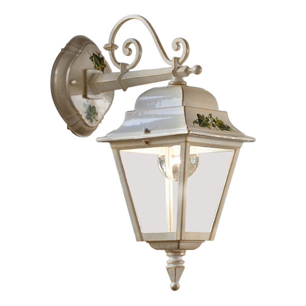 This outdoor wall lamp is entirely made of white aluminum decorated with hand-painted ivy for a classic and harmonious style between shape and colors.