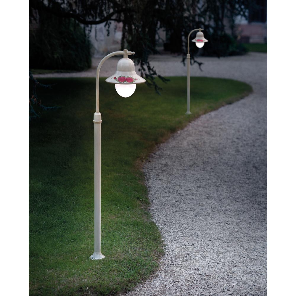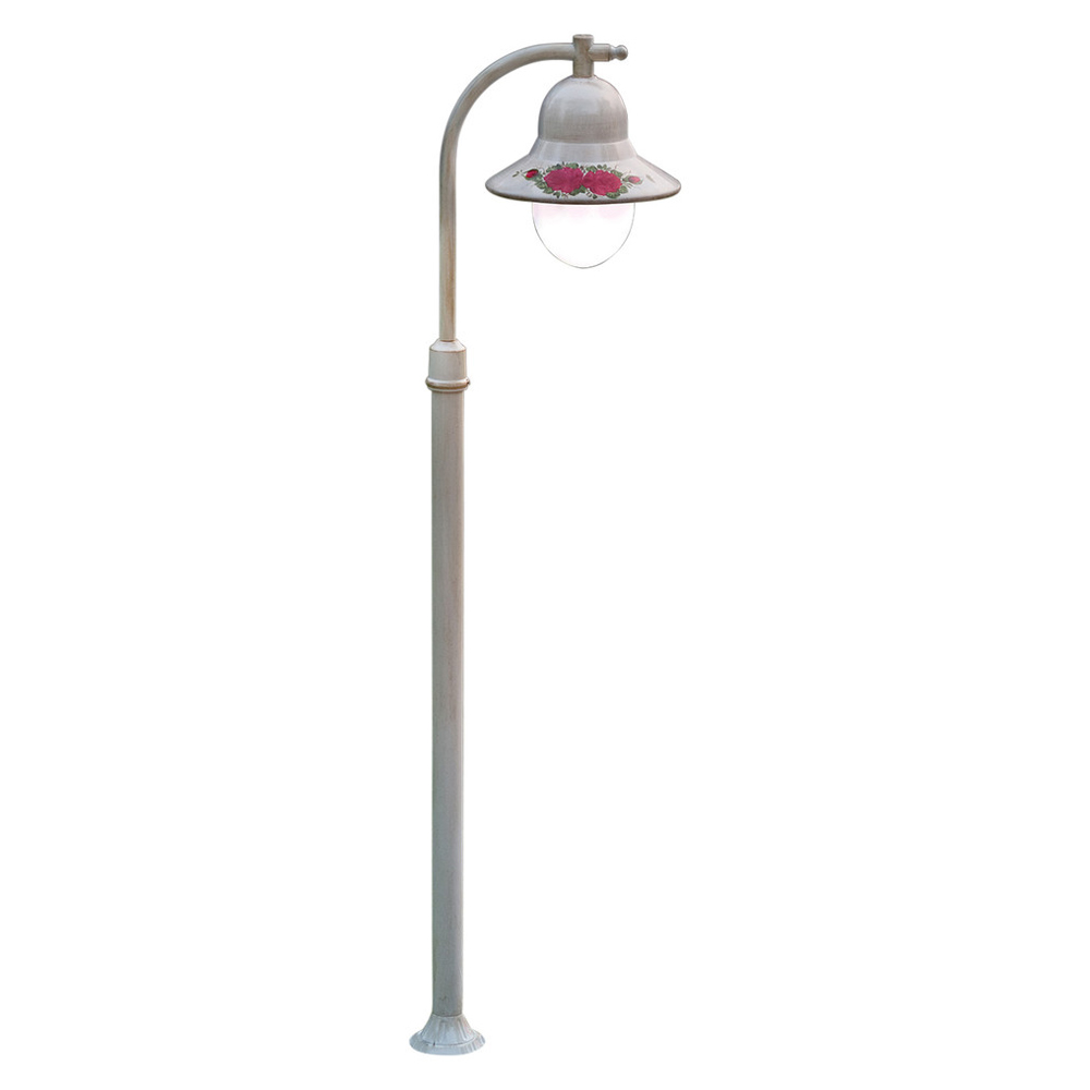 This outdoor lamppost is entirely made of shaded white aluminum and decorated with hand-painted flowers for a classic and harmonious style between shape and colors.