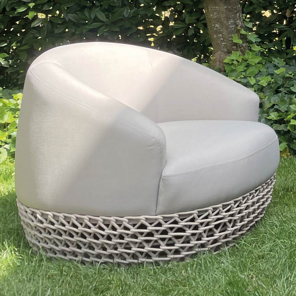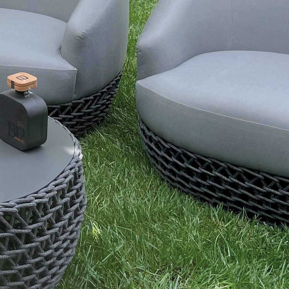 The cushions, made of waterproof outdoor rubber , guarantee maximum comfort and impeccable resistance to atmospheric agents, while the aluminium structure hidden inside the seats ensures solidity and durability .