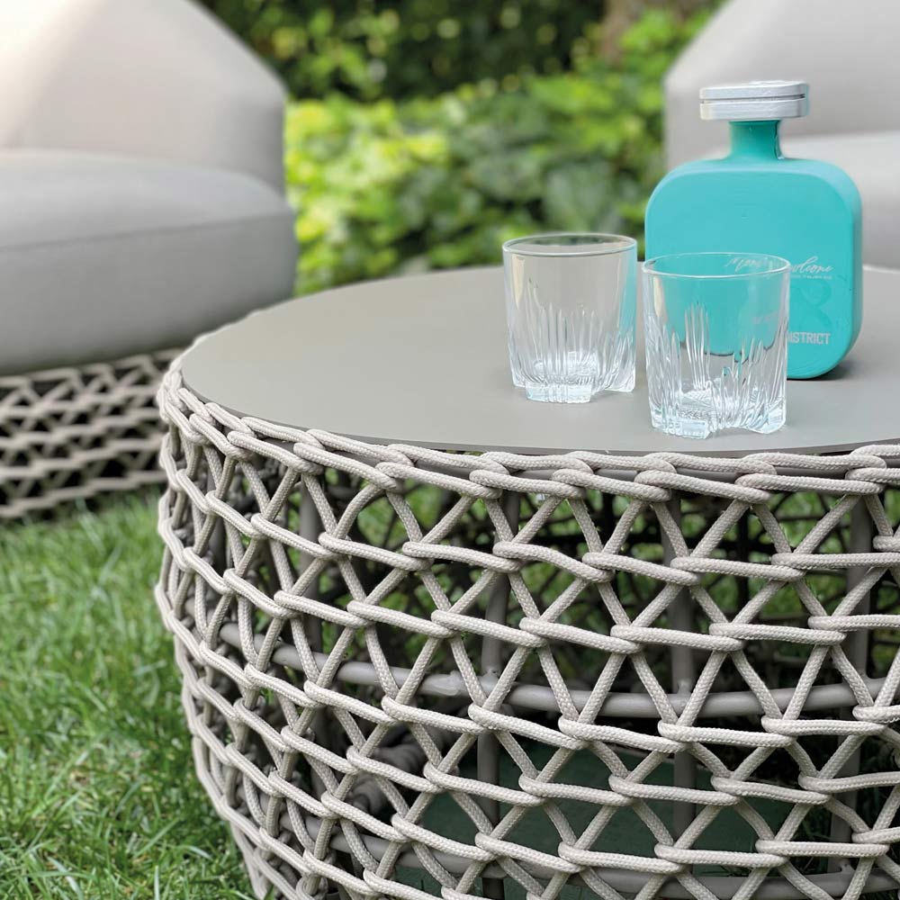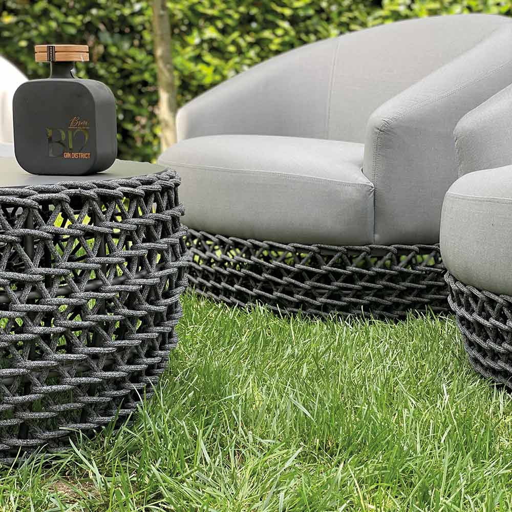 Completed with a matching coffee table featuring the same decorative weave, this lounge set is the ideal choice for creating an elegant oasis of relaxation , perfect for gardens, terraces and verandas.