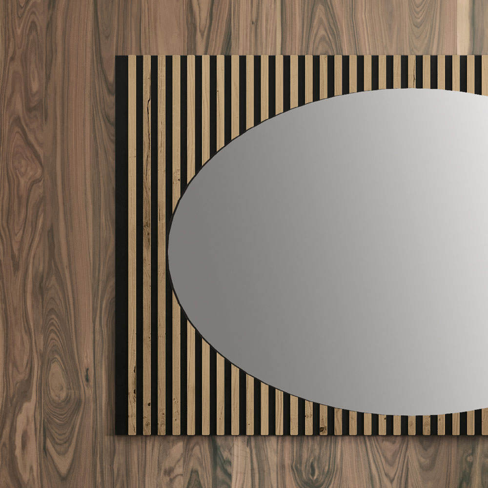 Practicality and aesthetics come together in this wall mirror made in Italy with high quality materials. The panel is made of oak ribbed MDF with a Nordic knotted oak and charcoal finish.