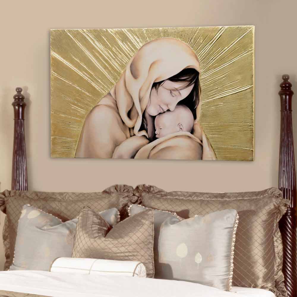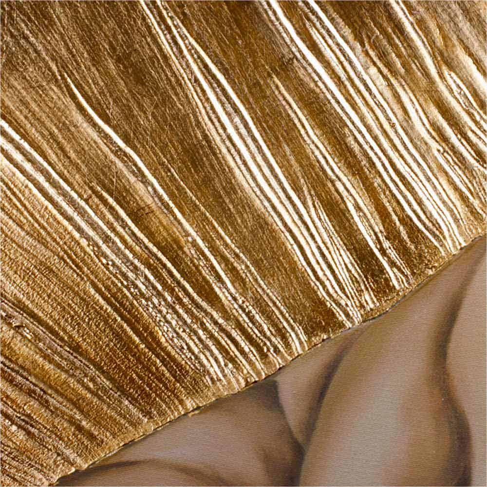 Amore Infinito is hand-decorated with embossed gold leaf on canvas.