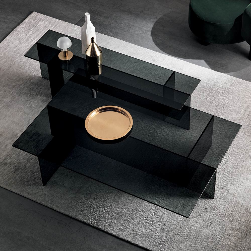 coffee table characterized by a rigorous and essential design that sees the union of two tables in a single table forming a real sculpture.