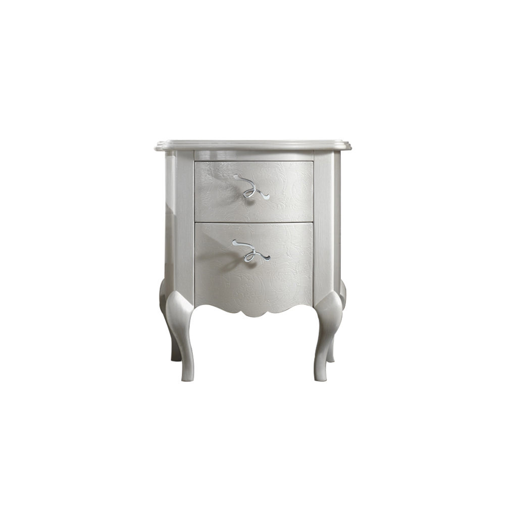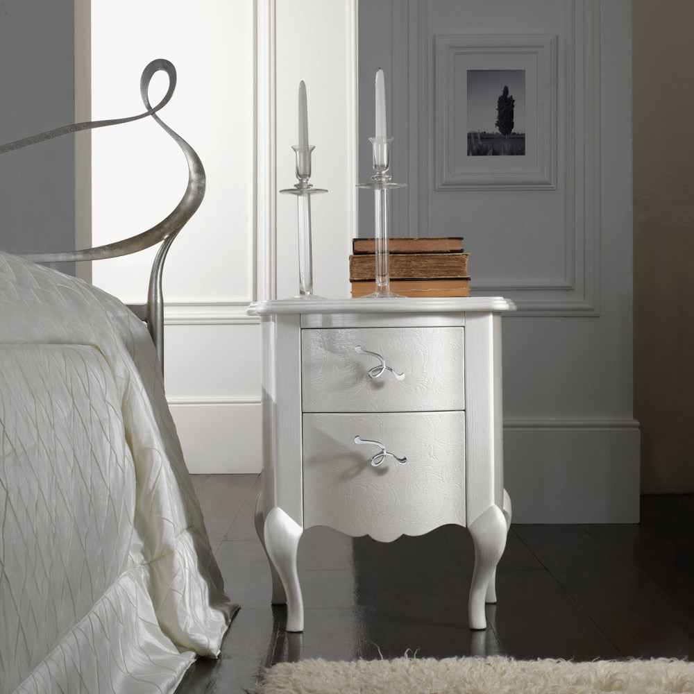Pearl White Relief Bedside Table with Chromed Handles Made in Italy - Berlin