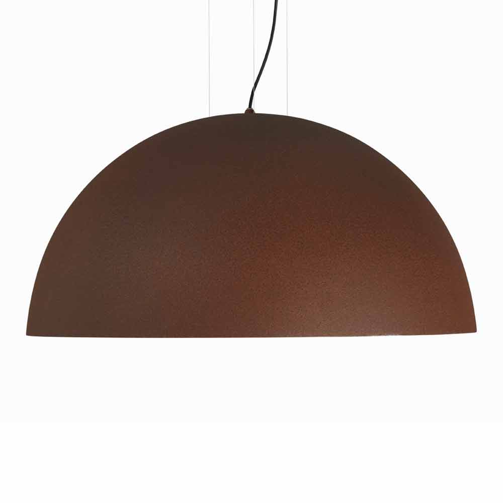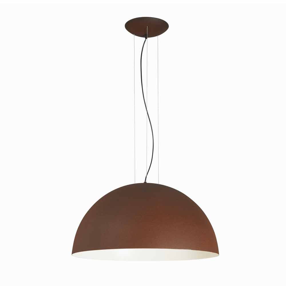 Two-colored pendant lamp in powder-coated steel and decorated by hand. The light spreads homogeneously thanks to its shape and to the white painted interior covering.