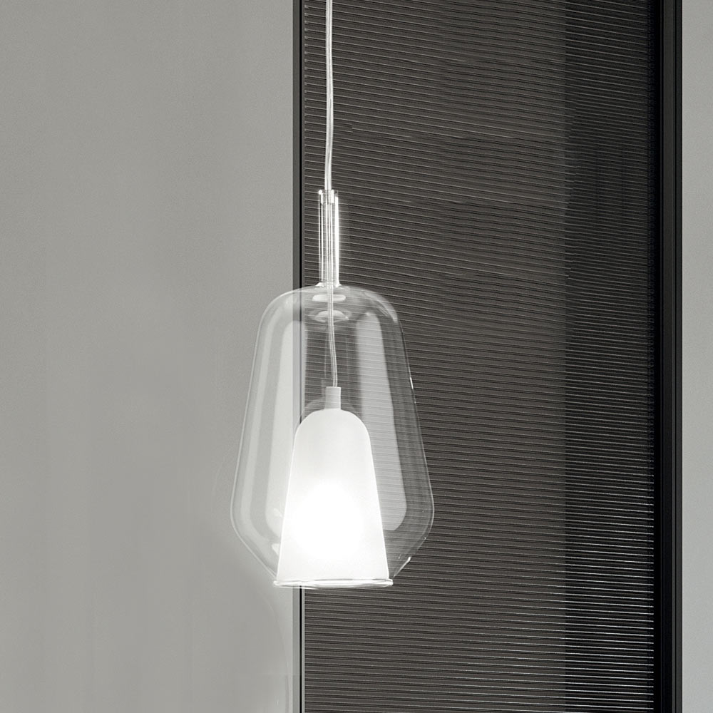 Discover the charm of sophisticated lighting with this pendant lamp, designed to infuse elegance and warmth into any space. The lamp, suspended from a thin wire, can be in different finishes, reflecting a welcoming and inviting light that enriches the environment with a touch of refined modernity .