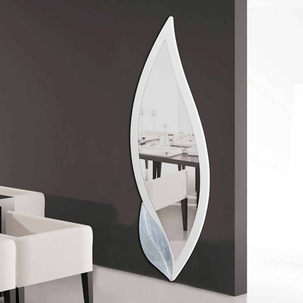 Modern design wall mirror. This unique handmade mirror is made of ivory lacquered MDF decorated with silver leaf. A true art piece! This original wall mirror is the perfect mirror to furnish your house, your office or  your shop with style. The small leaf in the silver colour is hand decorated.