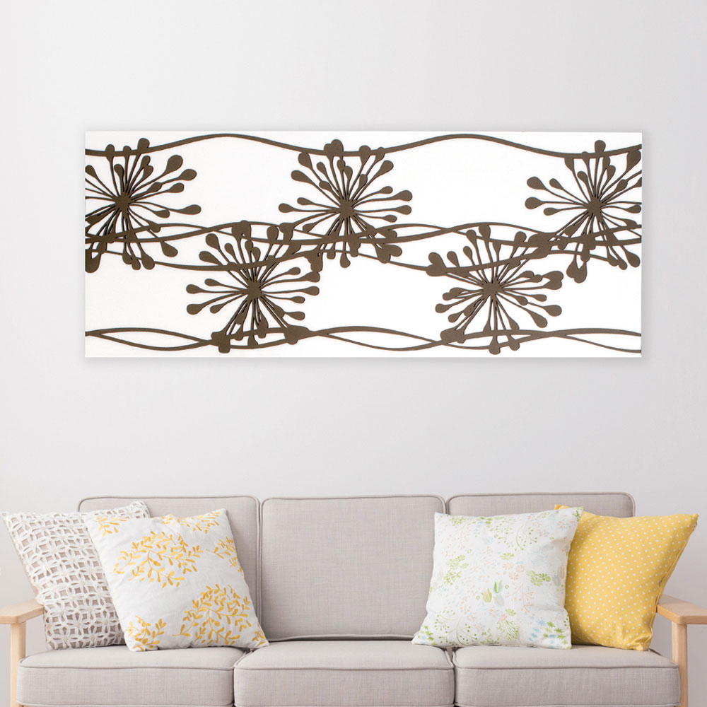 Abstract panel for elegant decoration, made on white lacquered wood with dove gray lacquered decorations of anemones .