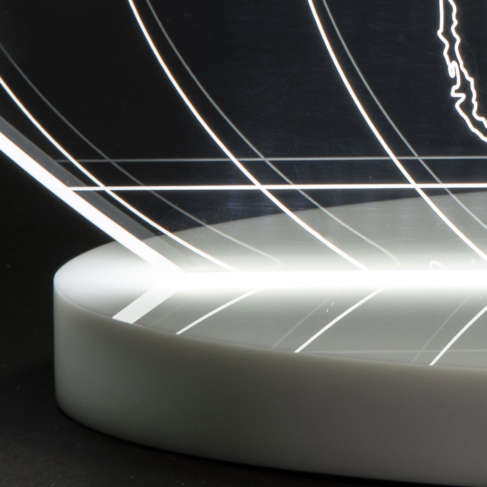 laser engravings light up along the entire surface through a
