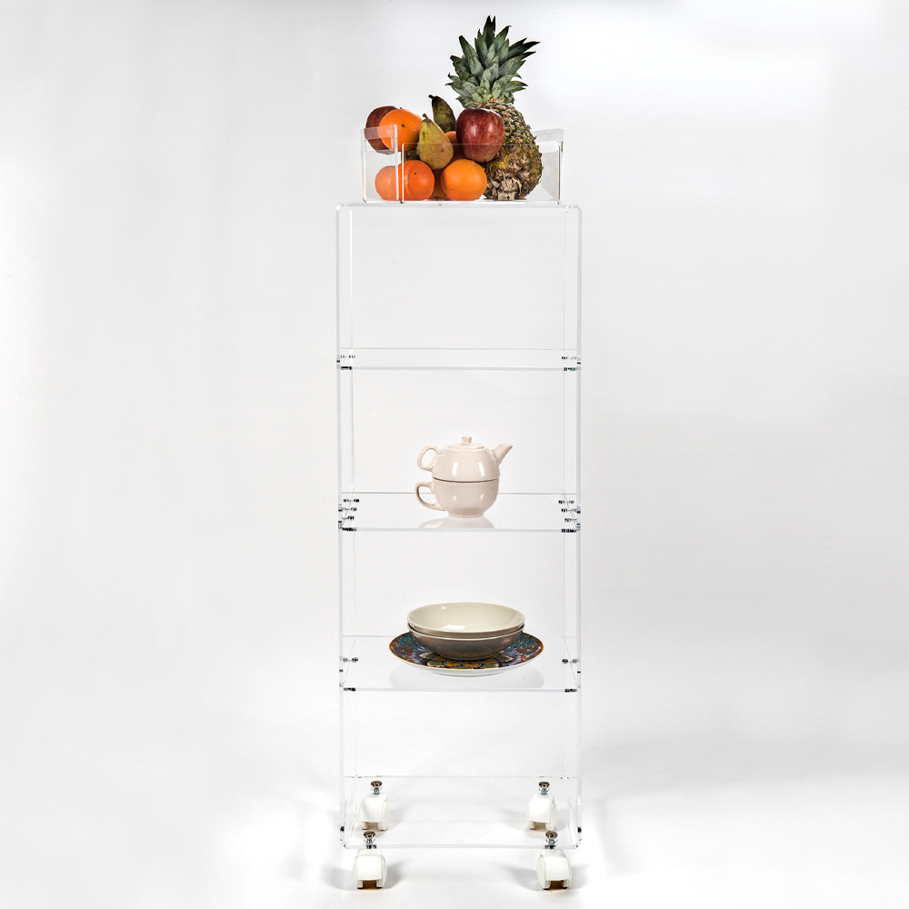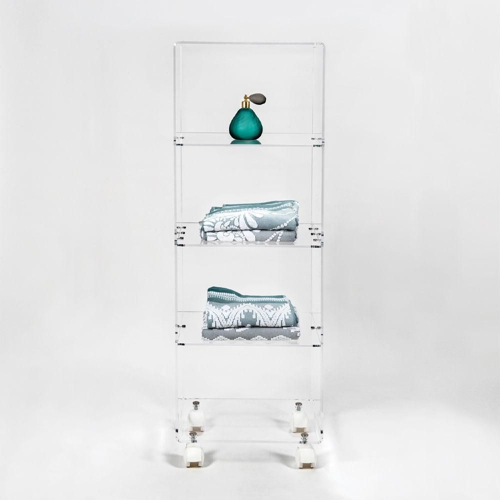 Each shelf of this trolley is a stage that enhances what it contains, thanks to the crystalline transparency of the first choice plexiglass. The raw material, 100% virgin polymer plexiglass , ensures a brightness and brilliance that remain unchanged over time, a commitment to quality that can be seen and felt.