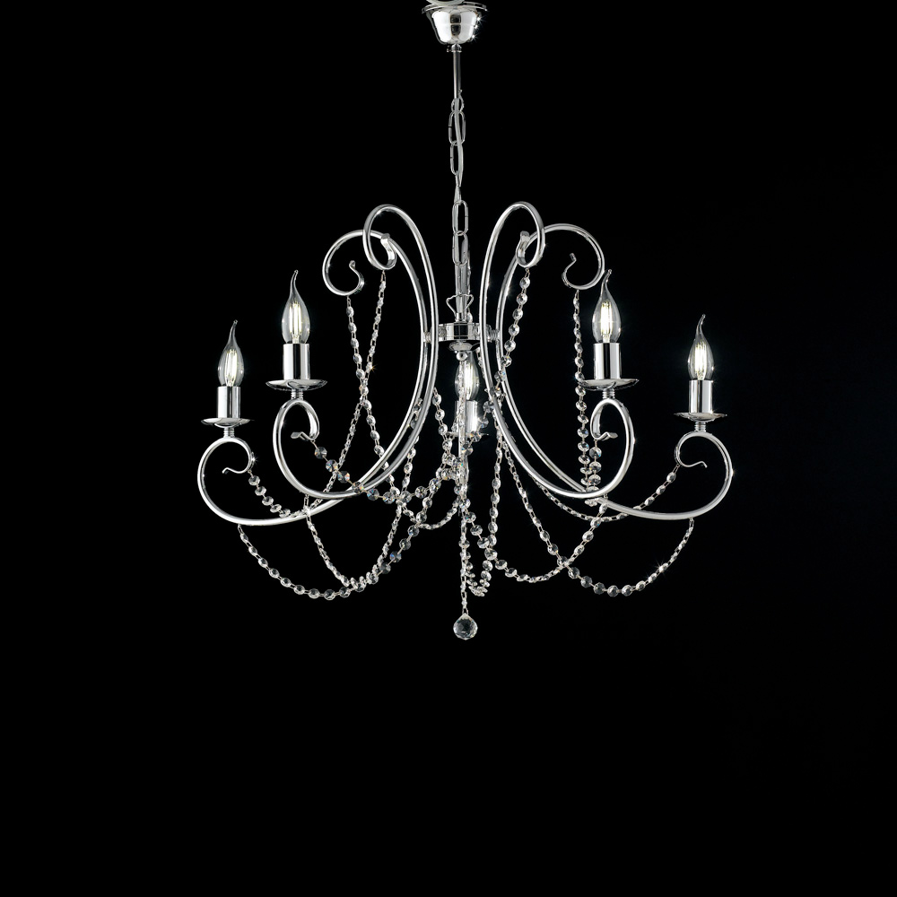An icon of timeless elegance, this classic iron chandelier captivates at first glance with its sinuous lines , finely crafted arms and cascades of decorative crystals that reflect the light with refined brilliance.