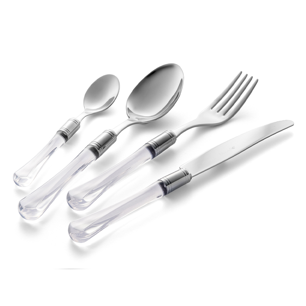 Polished Stainless Steel Cutlery and Transparent Acrylic Handle 24 Pcs - Brilli