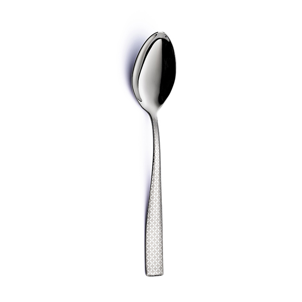 minimal design of the wide handles, the shaped and elongated shape of the bowl of the spoons and the sobriety of the fork evoke an idea of purity and infinity.