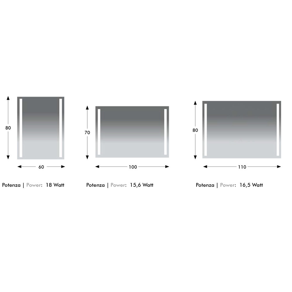 Available sizes:- L 60 x P 3 x H 80 cm (18W);
