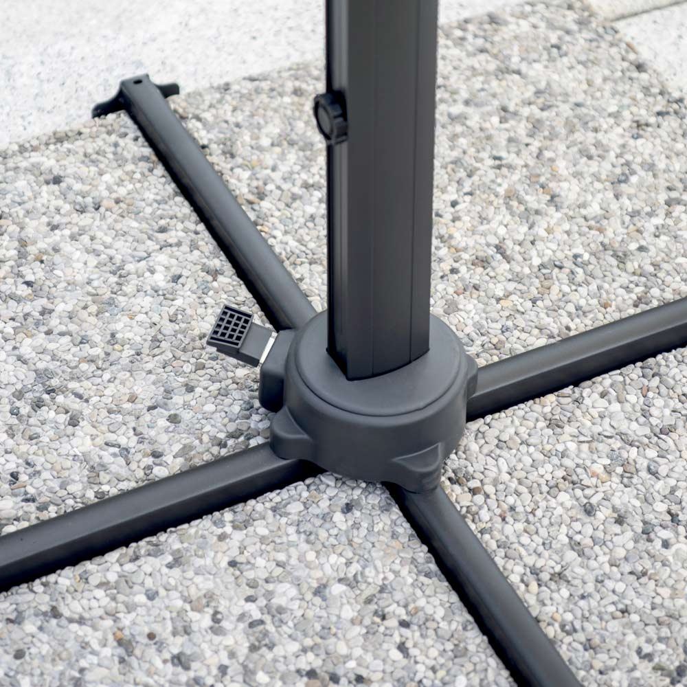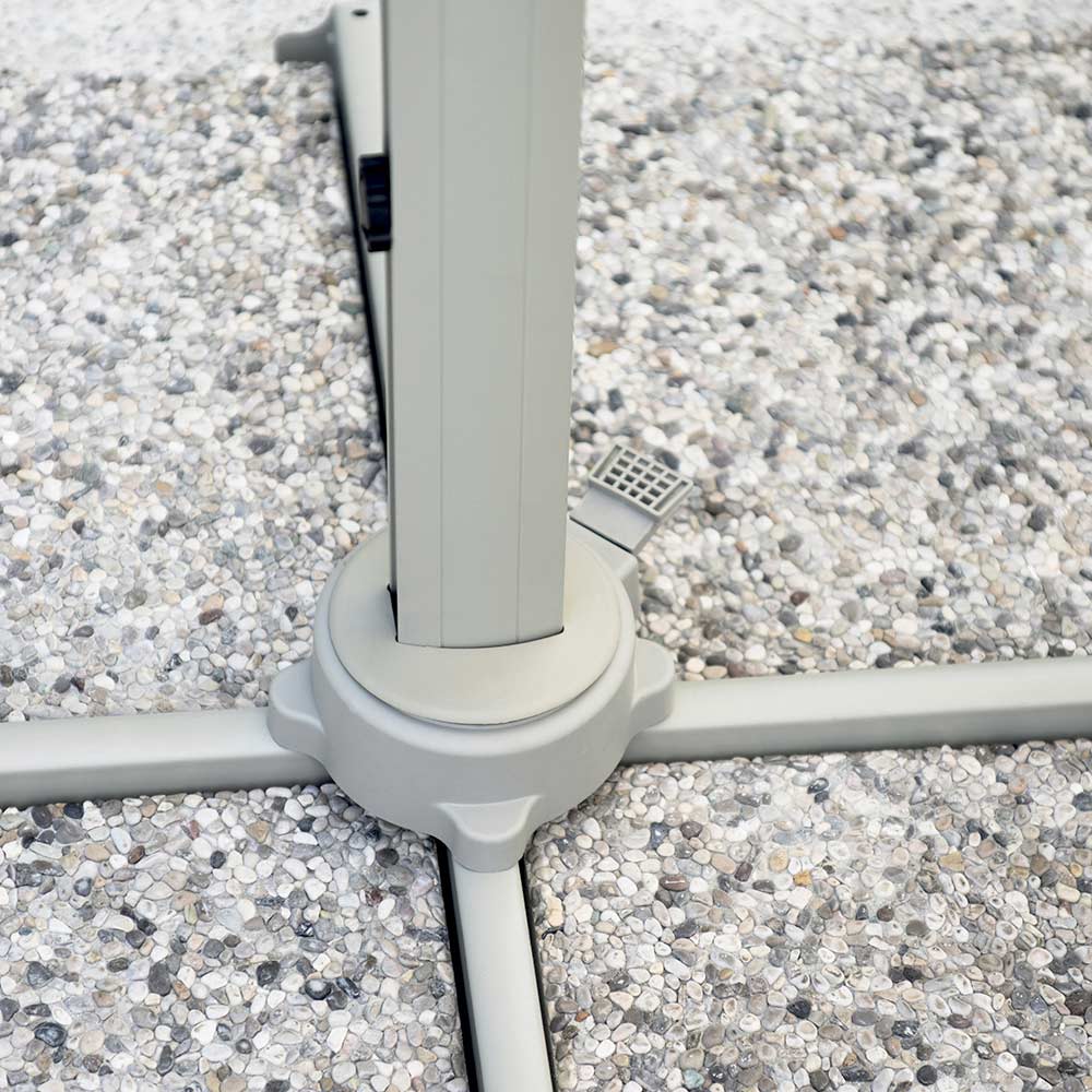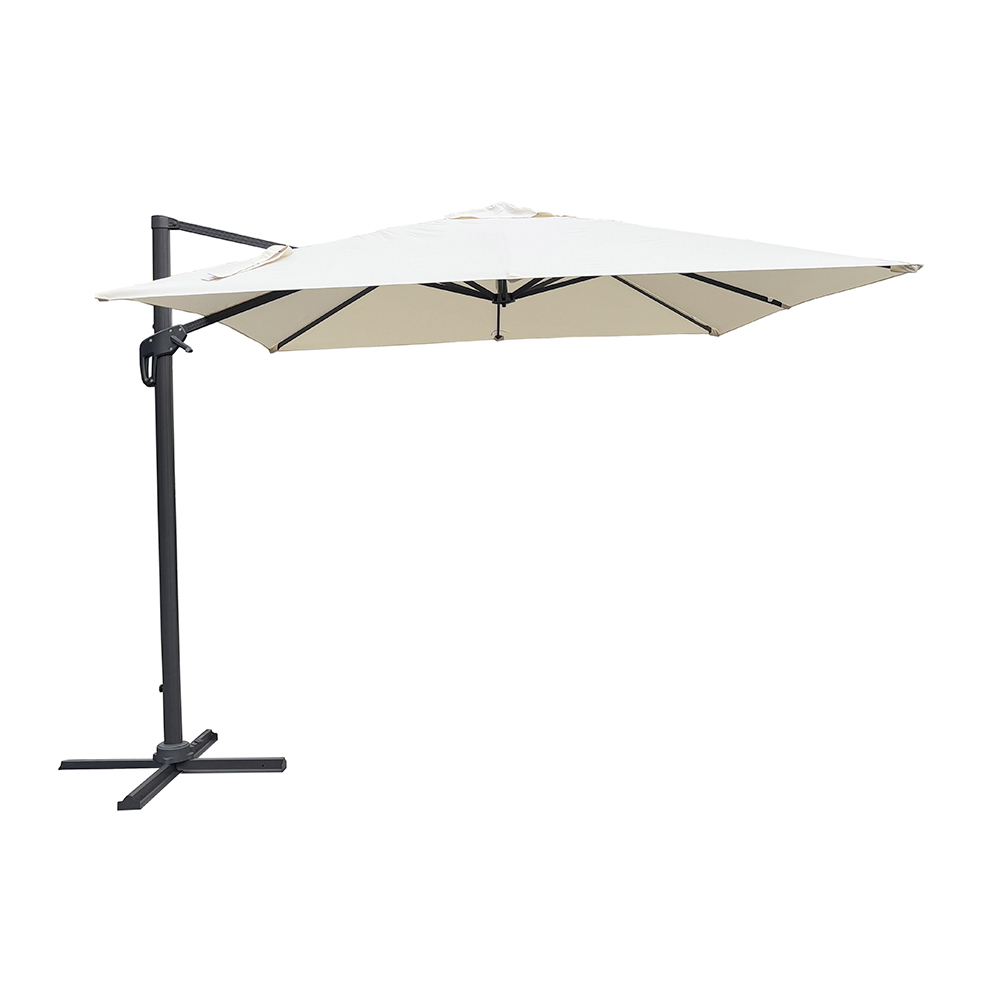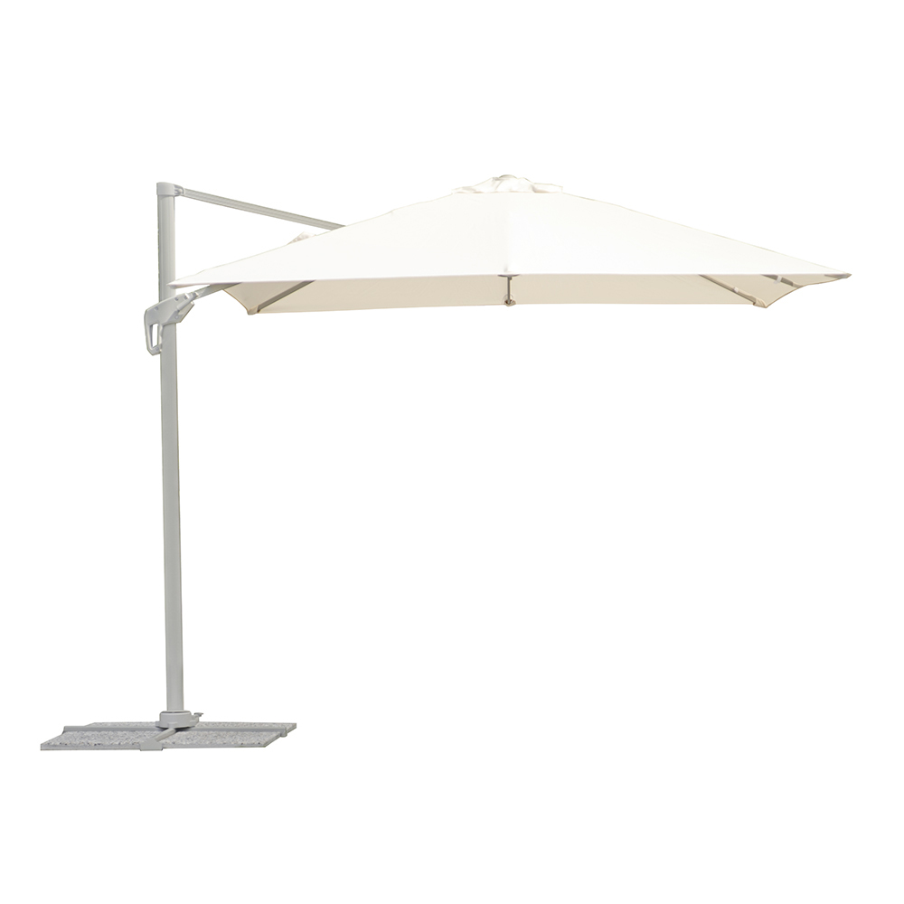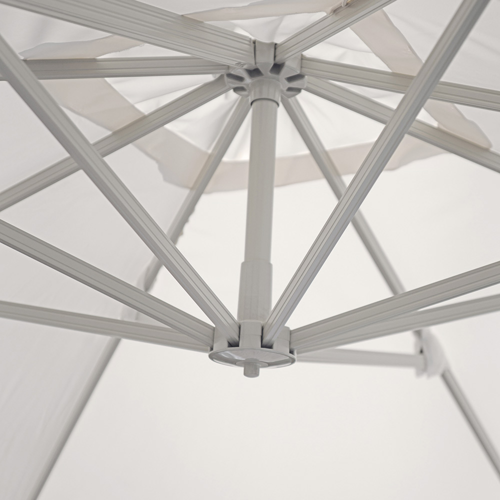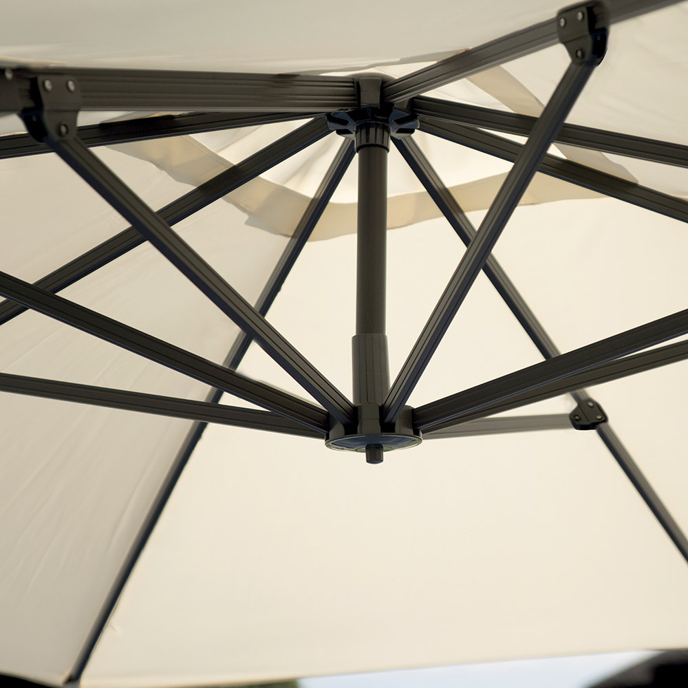 The 250 g ecru polyester canopy provides excellent protection from the sun's rays and is highly weather-resistant, creating a spacious and welcoming shaded area. Thanks to its 360° rotation system, the umbrella can be easily adjusted to match the sun's position, always offering maximum coverage and comfort.