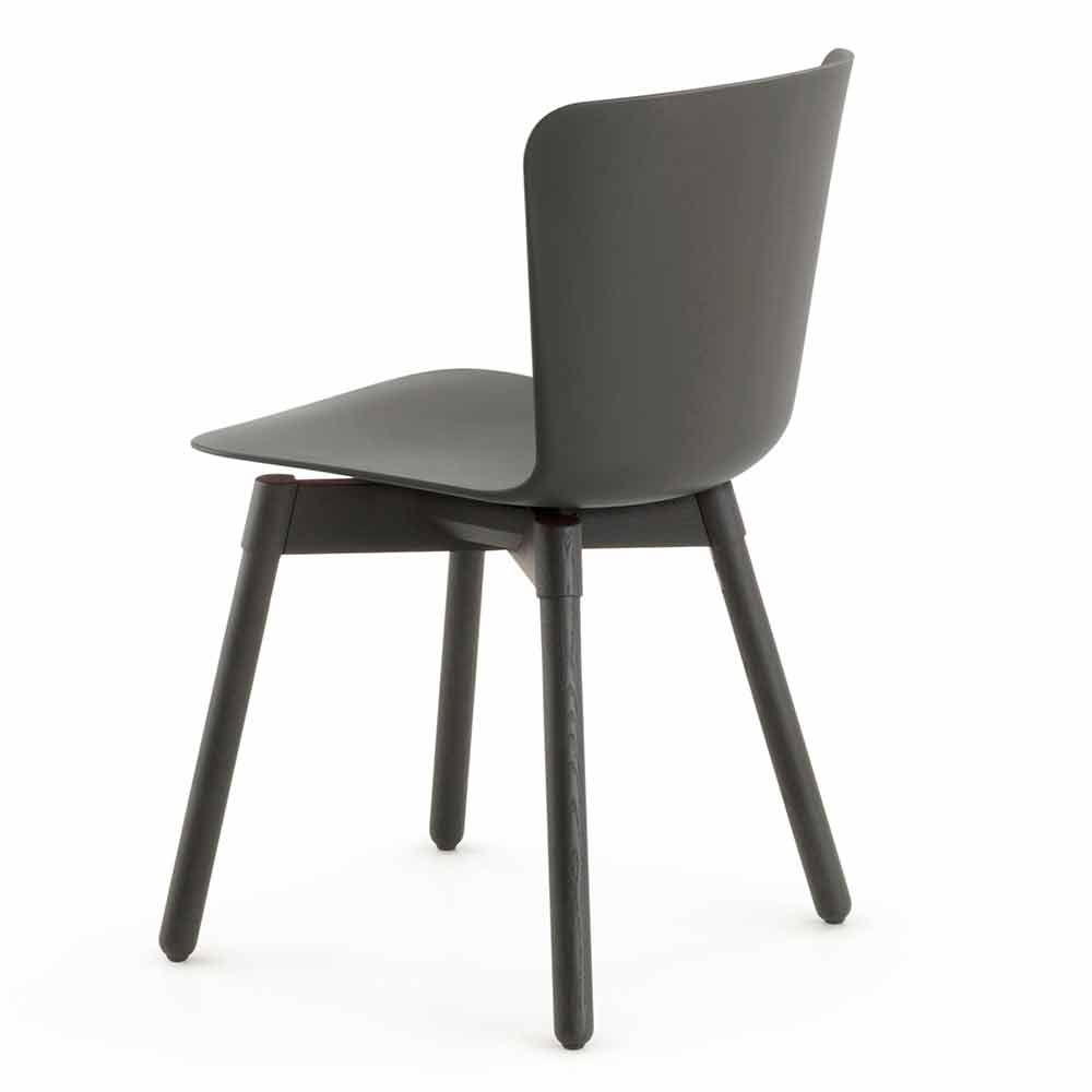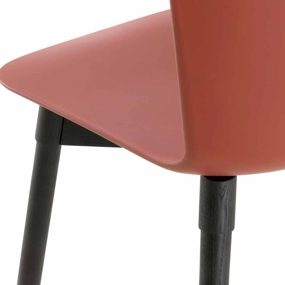 Innovative chair for dining room or kitchen made in Italy with seat and back in polypropylene and structure in black stained oak .