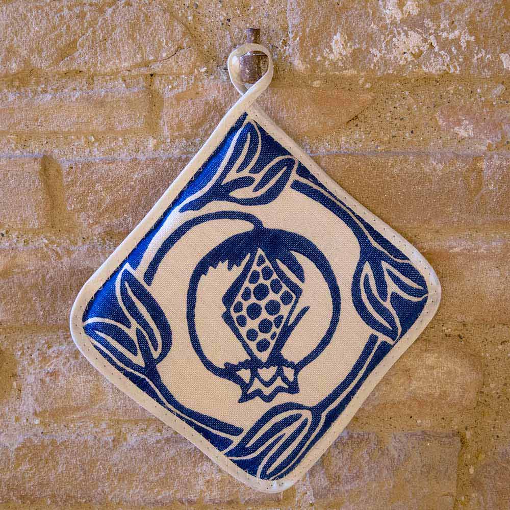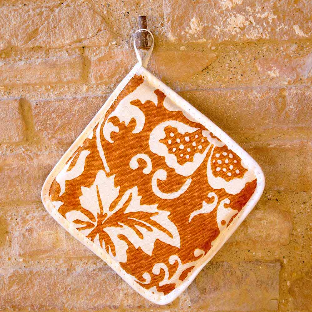 Potholders in pure linen of high Italian craftsmanship decorated with ancient hand-printed design, available in five variants, a unique piece of art, made in Italy.