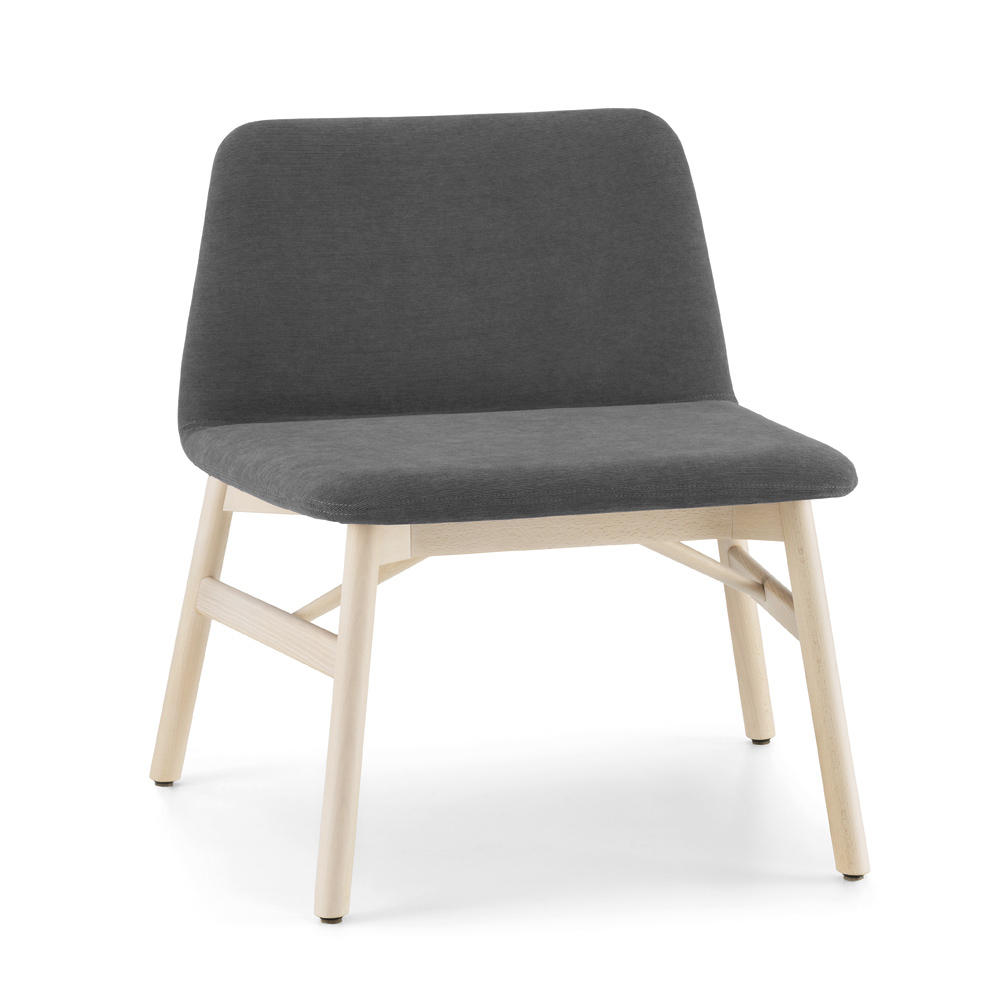 High quality armchair in beech wood with upholstered shell Made in Italy.