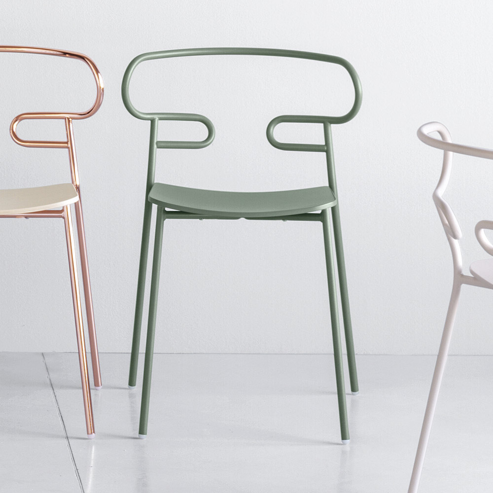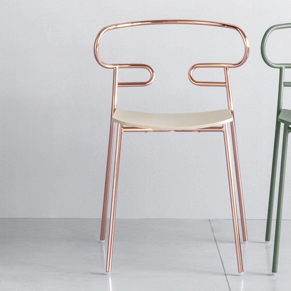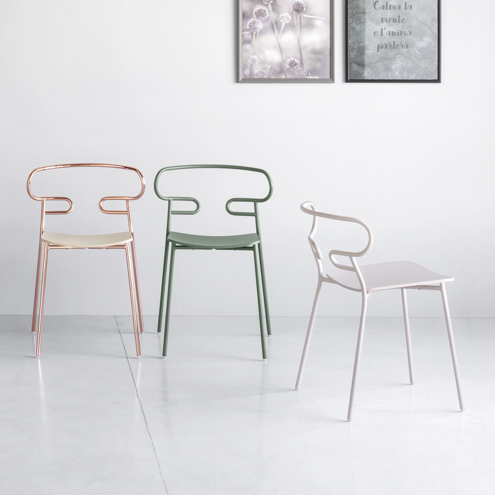 Chair for dining room or kitchen in painted metal with seat in ash wood made in Italy. From the perfect combination of elegance and simplicity comes this design object with extremely essential lines that gives a sense of movement and stands out thanks to the peculiarity of the backrest obtained thanks to the curvature of a single metal tube. This feature increases its originality , thus creating a seat as comfortable as it is aesthetically interesting and unique. Moreover, thanks to the possibility of being stacked, these chairs have an even higher functionality , thus allowing to optimize and organize spaces in the best possible way.