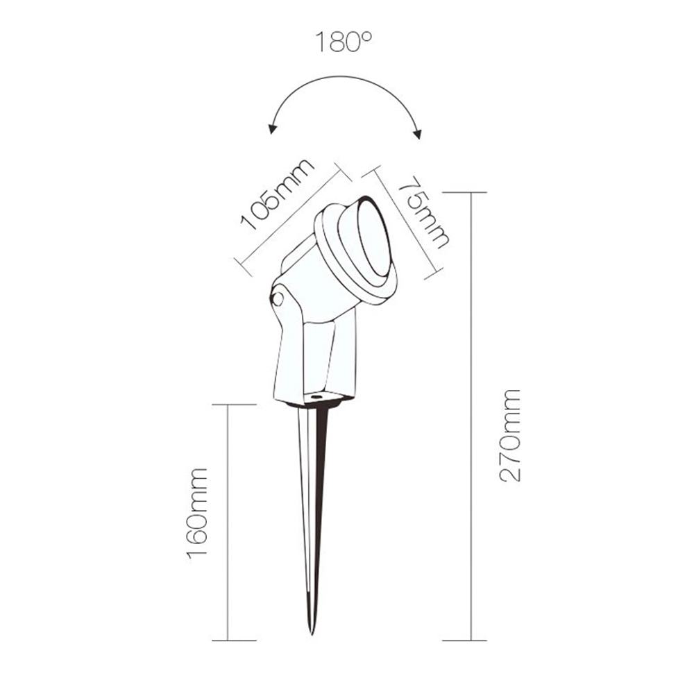 Outdoor spotlight projector in black cast aluminum with 180 ° adjustable body complete with 5W LED . A LED spot for outdoor use with a tip to be embedded in the ground characterized by a minimal style and high functionality which allows you to project a different light beam according to your needs thanks to the possibility of orienting it according to your needs. Ideal for lighting plants, trees, flower beds inside outdoor spaces such as gardens both in domestic spaces and in contract environments.