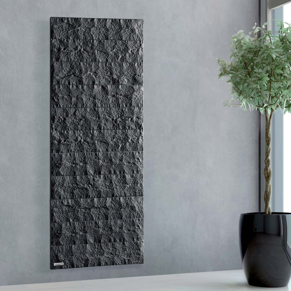 This hydraulic radiator made of marble dust with a bas-relief effect enhances the irregular surface of the stone and boasts an entirely Made in Italy production that combines design, functionality and technology, promoting an experience of welcoming well-being .