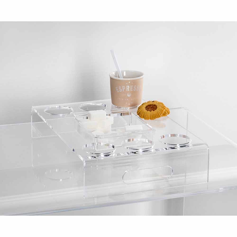Raised Tray in Transparent Plexiglass 6 or 8 Coffee Design 2 Pieces - Cracco