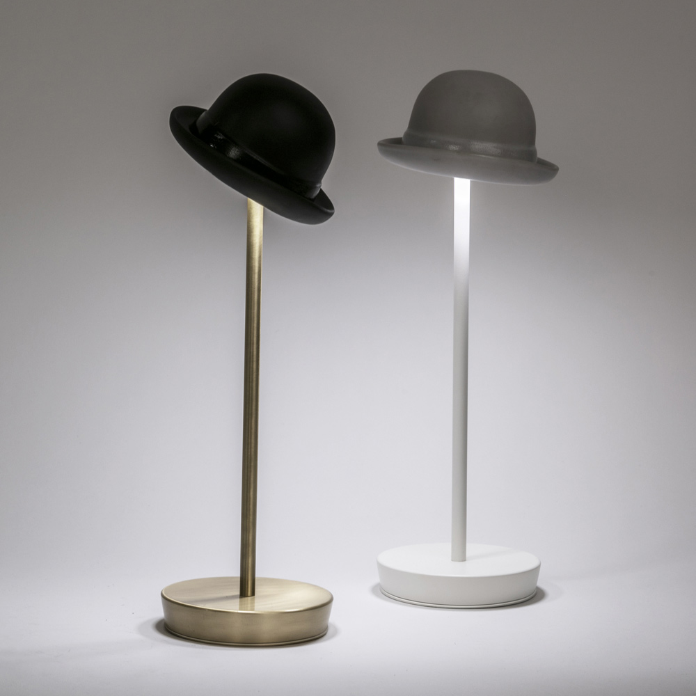 Perfect as a conversation piece in a modern office or as a night lamp on your bedroom bedside table, this lamp stands out for its creative design that mimics an elegant hat . It is an ideal choice for those looking for functional lighting with a distinct and playful aesthetic.