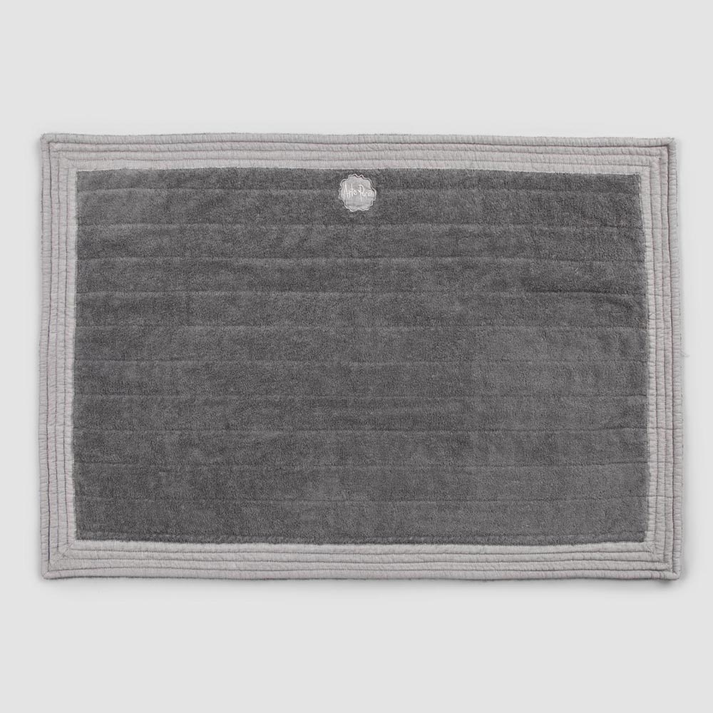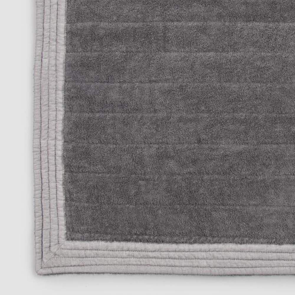 The value of tradition joins the modern lifestyle with the washed gray cotton terry bath rug and linen blend border for an elegant shabby chic style.