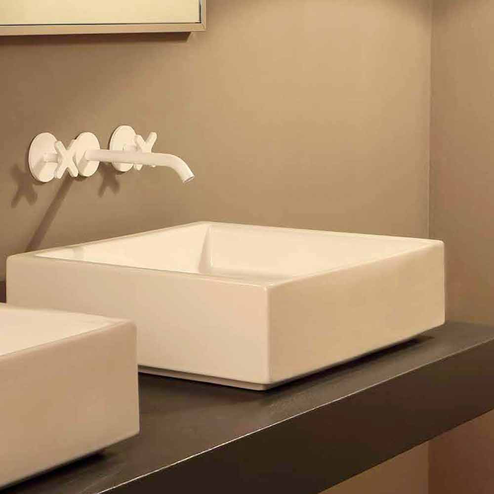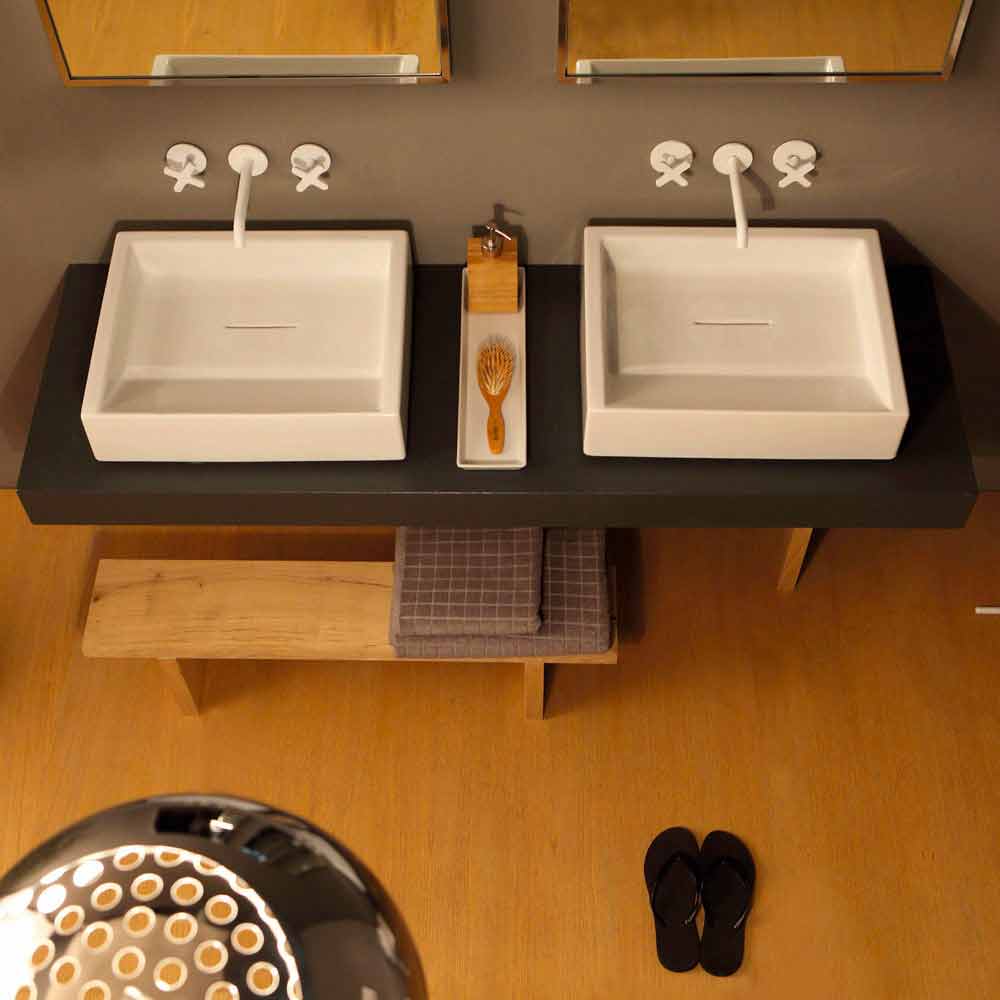 Design rectangular ceramic countertop washbasin made in Italy Dalia