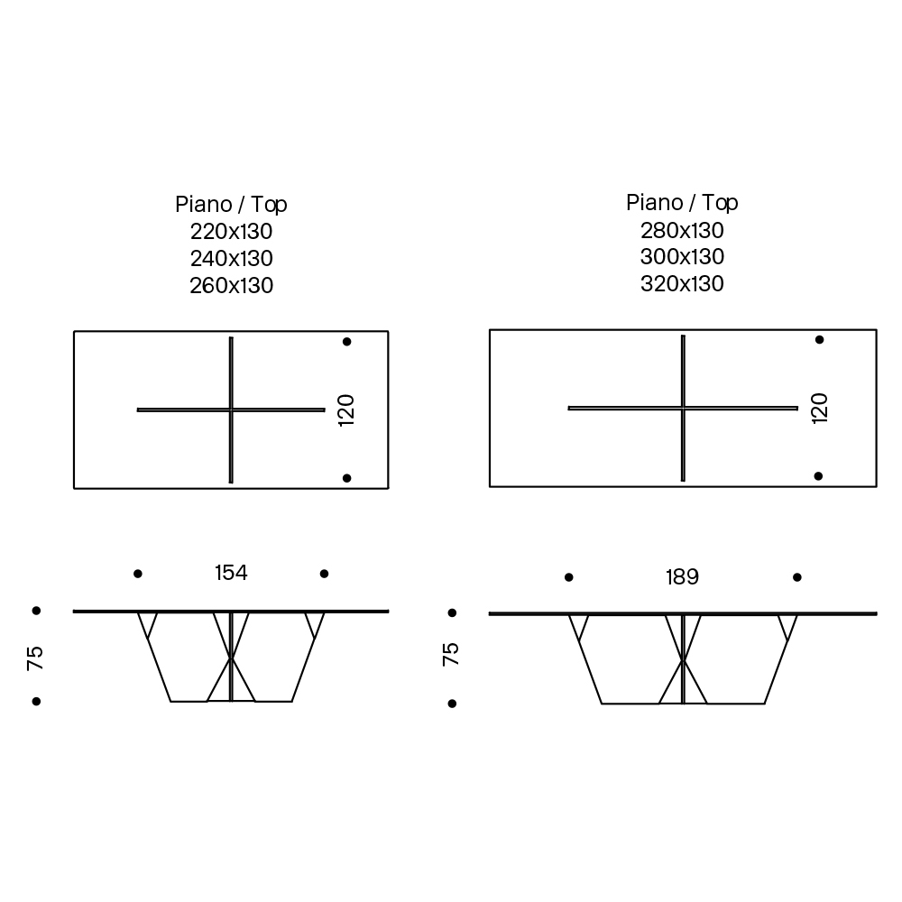 • L 320 x P 130 x H 75 cm.
